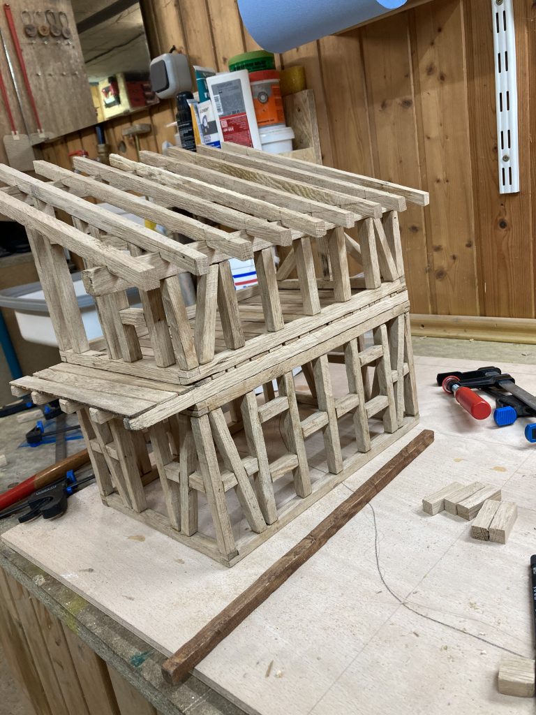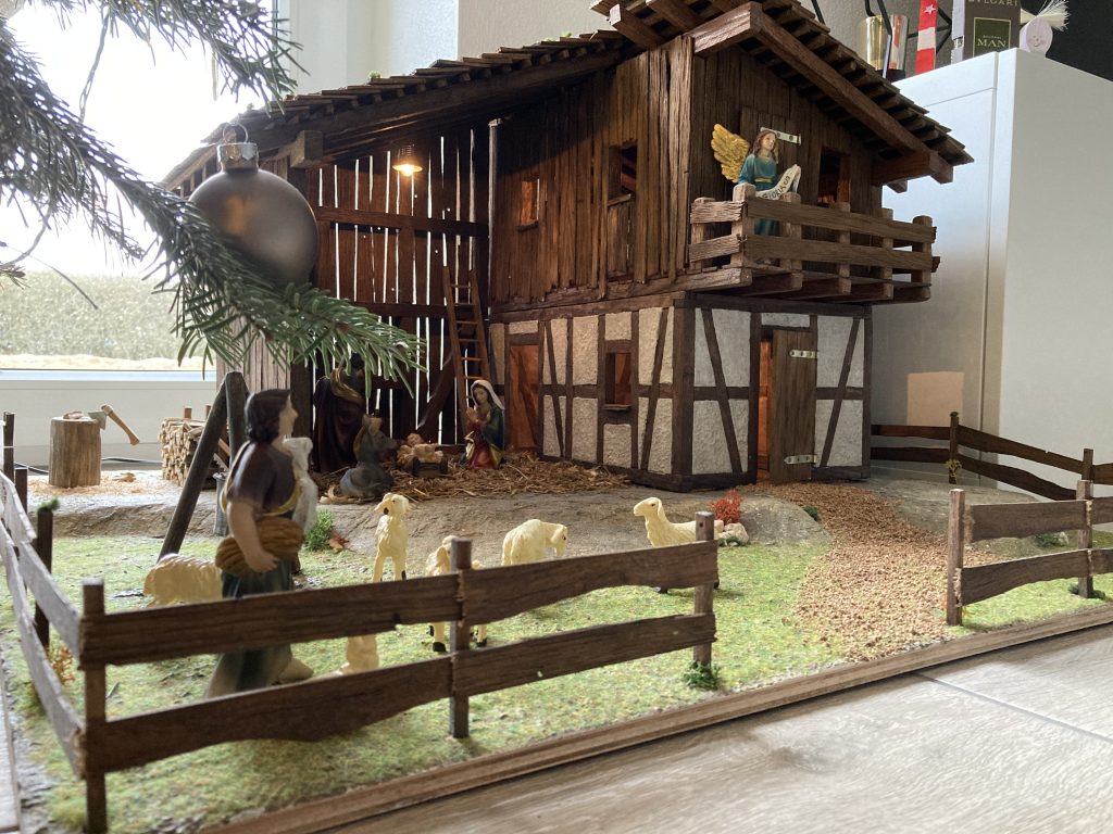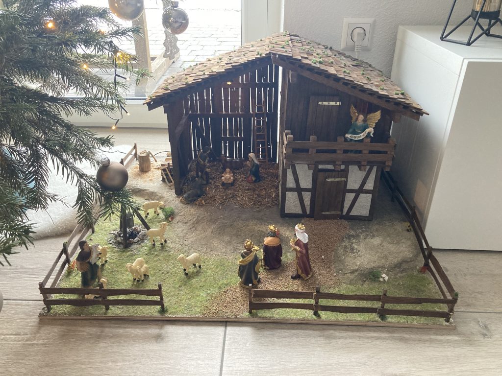 Hier habe ich von Grund auf eine alpenländische Fachwerkkrippe aus Eichenholz hergestellt. Die Balken, Sparren und Bretter wurden Maßstabsgetreu an der Tischkreissäge zugeschnitten und anschließend gebürstet für eine alte ‚gebrauchte’ Optik. Die Dachschindeln wurden aus Lärchen Holz mit der Hand aufgespalten. Alle Hölzer wurden anschließend mit Pulverbeize gebeizt. Das Fachwerk wurde ausgegipst. Die Landschaft wurde auf einer Sperrholzplatte mit Styropor und Gips modelliert. Danach mit Pigmentfarben optisch angepasst. Komplett alles wurde selbst hergestellt (Beil, Gestellsäge, Türbeschläge, …) Bis auf die Figuren und die Beleuchtung – die wurden gekauft 🤪 – verwendetest Werkzeug: DICTUM Sägen-Set Japan, DICTUM Band- und Tellerschleifer, DICTUM Stemmeisen-Satz Cryo, Titebond II Leim Premium.