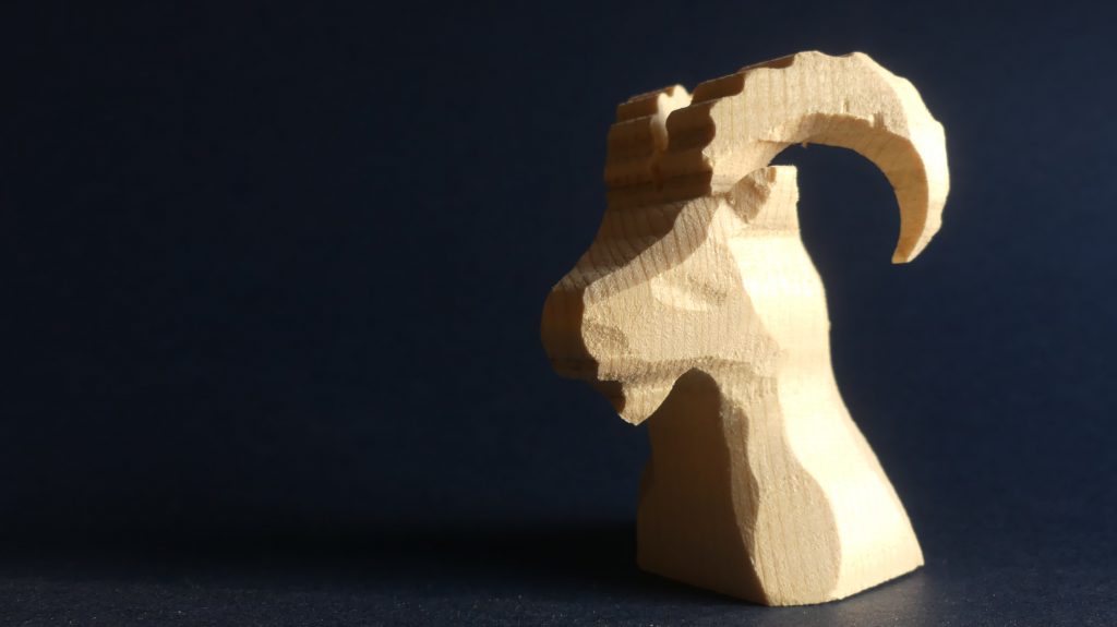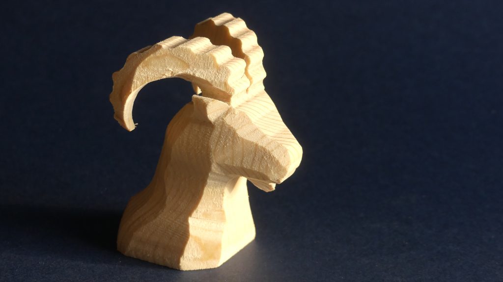 Diesen 3D Steinbock habe ich heute an der Pégas Dekupiersäge fertig gesägt. Er wurde „nur“ gesägt, nicht geschnitzt und nicht geschliffen. Gerne lasse ich diese Art der Kreationen ungeschliffen, damit man die Sägeschnitte nachvollziehen kann. Eine 3D Sägevorlage mom Steinbock ist auch geplant.