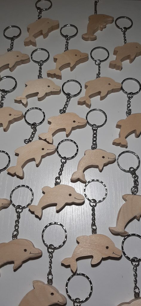 Welch Erfolgserlebnisse haben meine Kursteilnehmer doch in unseren Holz AG´s gefeiert. Damit sich die Schülerinnen & Schüler an die Möglichkeiten der Holzwerkstatt erinnern, habe ich für sie (eine Schule) Dutzende von Klassentiere für neun Schulklassen als Schlüsselanhänger angefertigt. Gesägt wurden die Delfine an der Pégas Dekupiersäge.