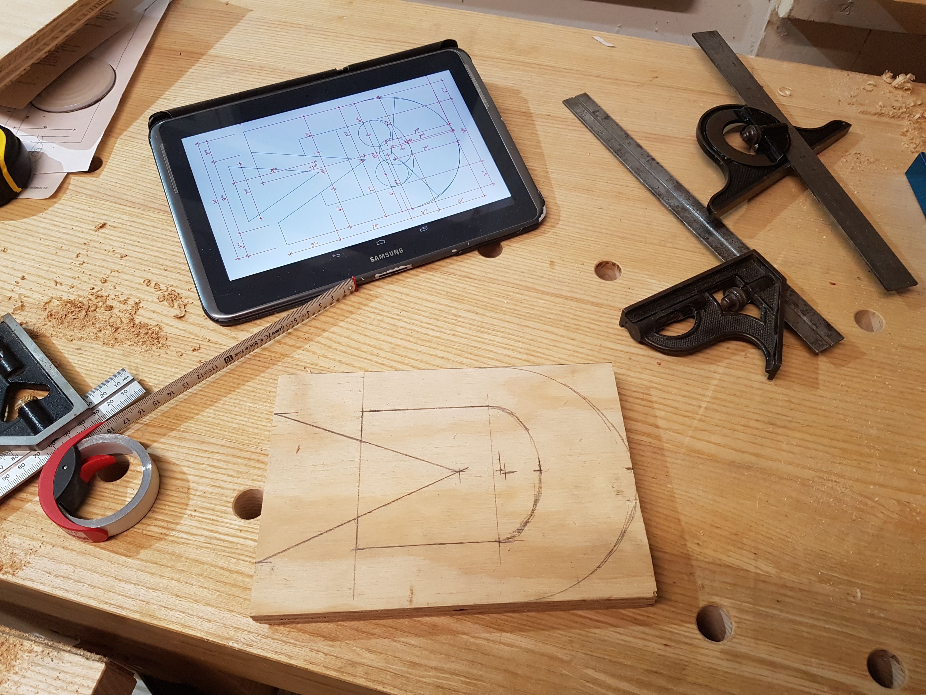 Statt anzuzeichnen wurde mit der Tabellenkalkulation eine Linierung mit 8 mm Abstand erstellt, ausgedruckt und aufgeklebt. Vor dem eigentlichen Verleimen wurden Klötze aufgeleimt, an denen später Schraubzwingen angesetzt werden konnten.