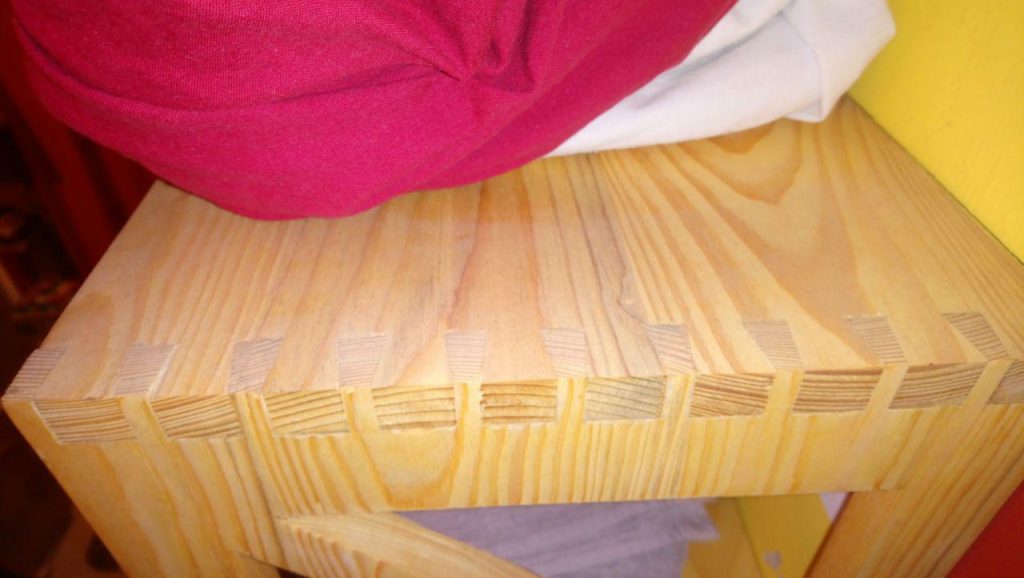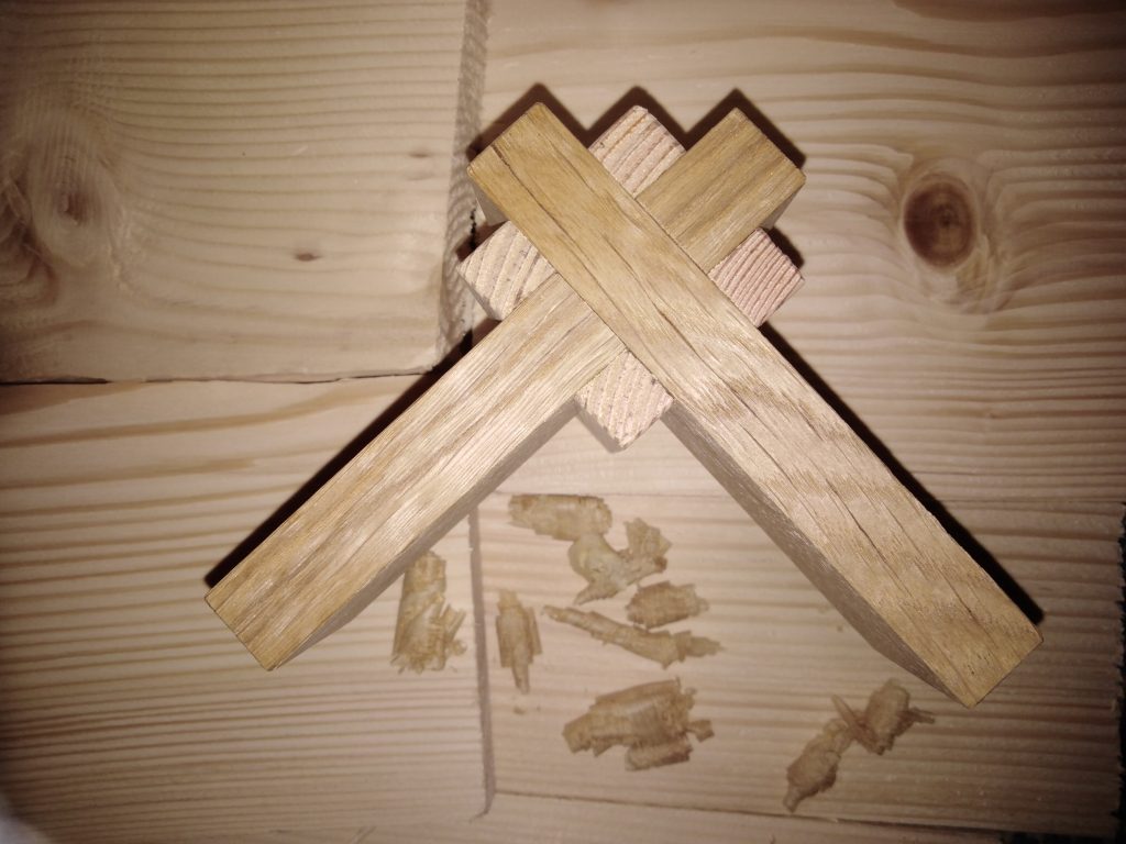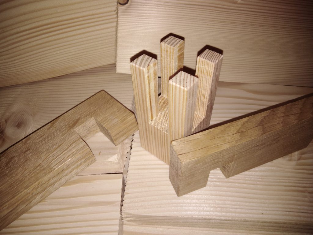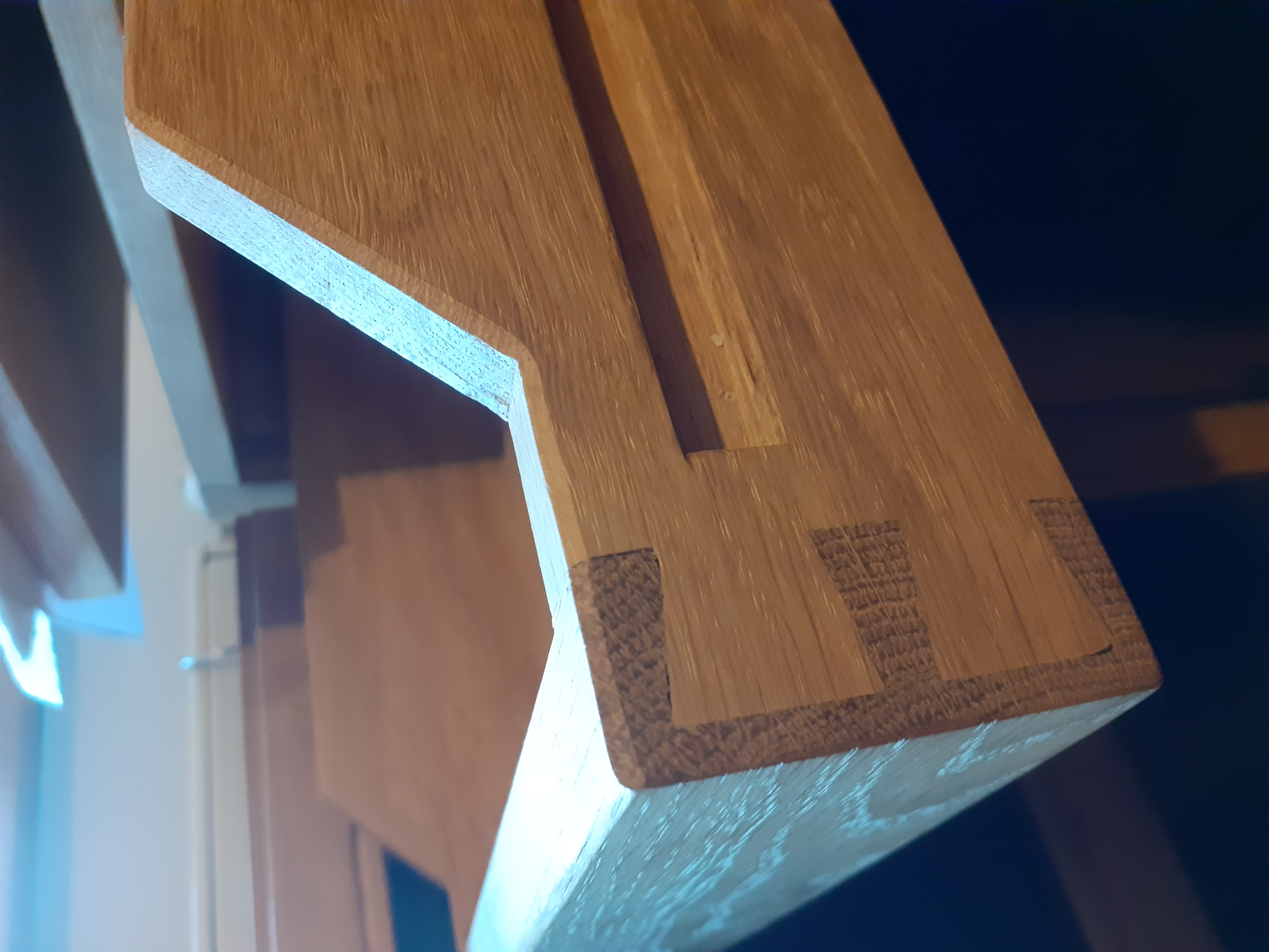 Aus Kiefer- und Eiche-Reststücken habe ich zum Ausprobieren eine einfache Eckverbindung gefertigt. Dies war das erste richtige Projekt für meine neuen Stemmeisen und den Japanhobel. Die Eckverbindung ist stabil, meines Erachtens schlicht und formschön und aufgrund der Einfachheit gut als rationelle Eckverbindung z.B. für Untergestelle von Tischen oder Bettrahmen zu verwenden.