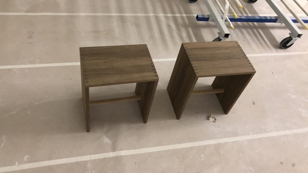 Diese beiden Ulmer Hocker habe nach Vorbild von dem Dictum Ulmer Hocker mit dem Pantorouter gefertigt. Der Hocker besteht aus Eiche und wurde nach dem Bau mit Salmiakgeist geräuchert und anschließend mit 2 Komponenten Klarlack gespritzt. #dictumverbindet
