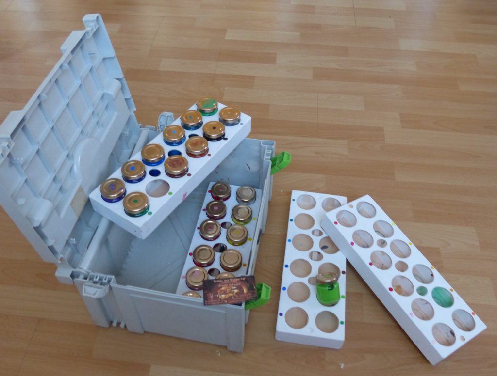 Farbkästen für 53 ml Farbgläser als Ordnungssystem