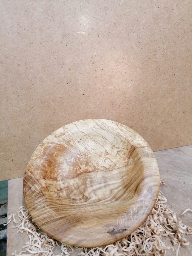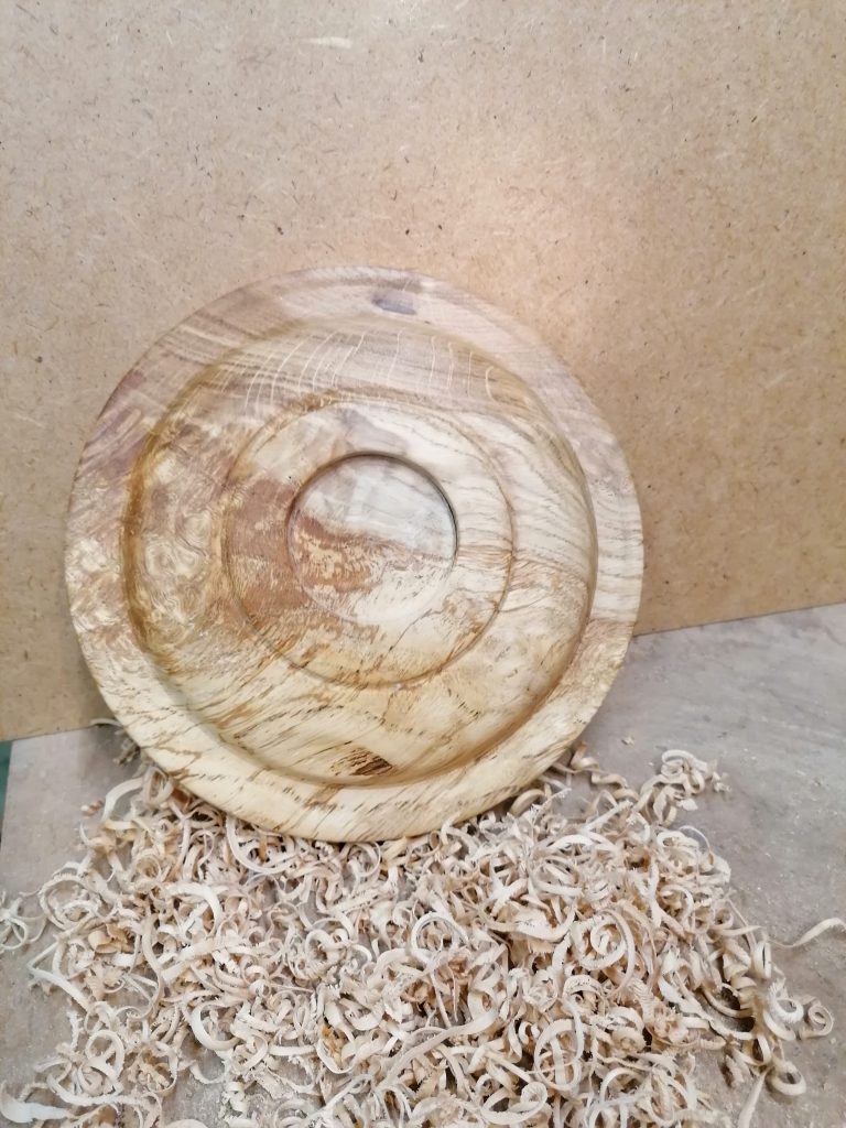 Diese flache Eichenholz Schale mit ca. 20 cm Durchmesser wurde mit Innenliegenden Rezess gedrechselt und dann mit dem Hochglanz Set von König Holz & Harz behandelt.