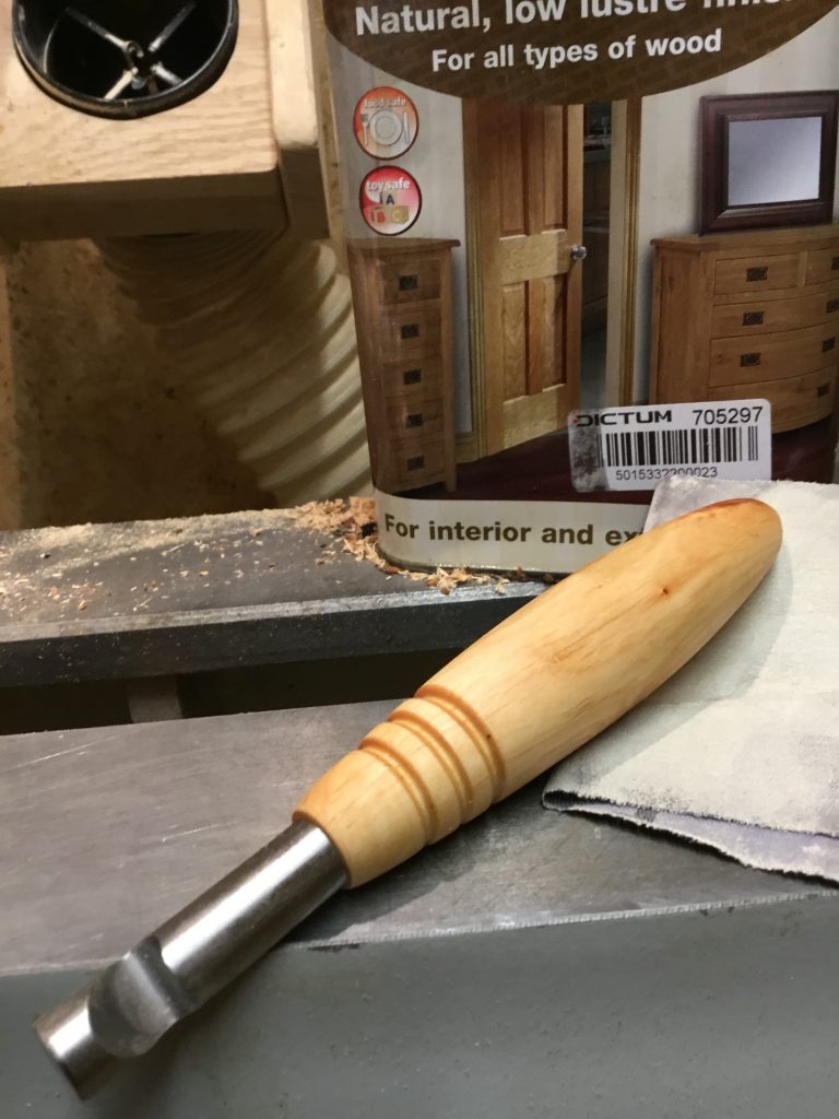 Der Flaschenöffner wurde aus dem Ast eines Obstbaumes gedrechselt. Die Oberfläche wurde bis Körnung 400 geschliffen und anschließend mit Danish Oil von DICTUM behandelt.