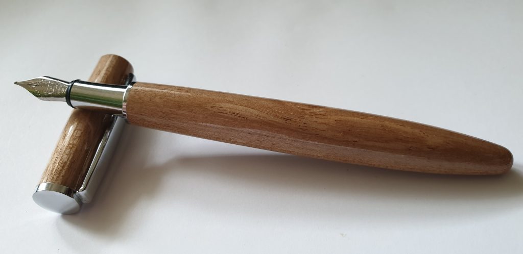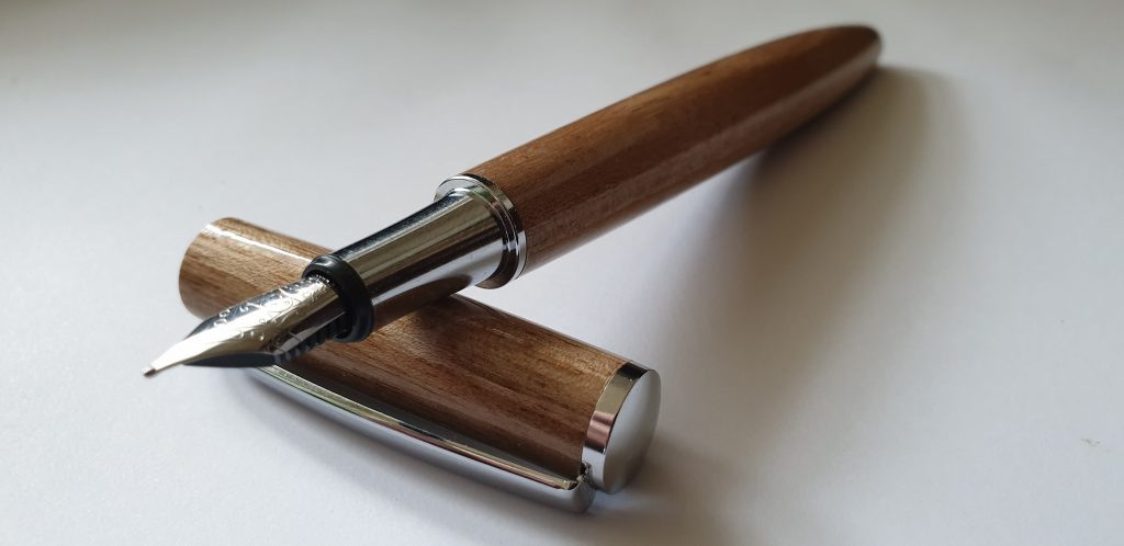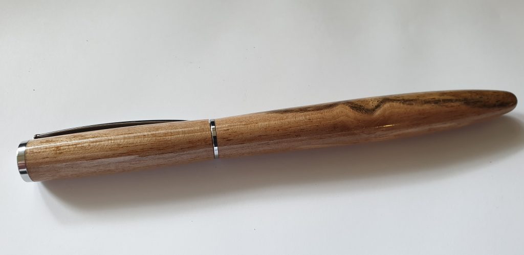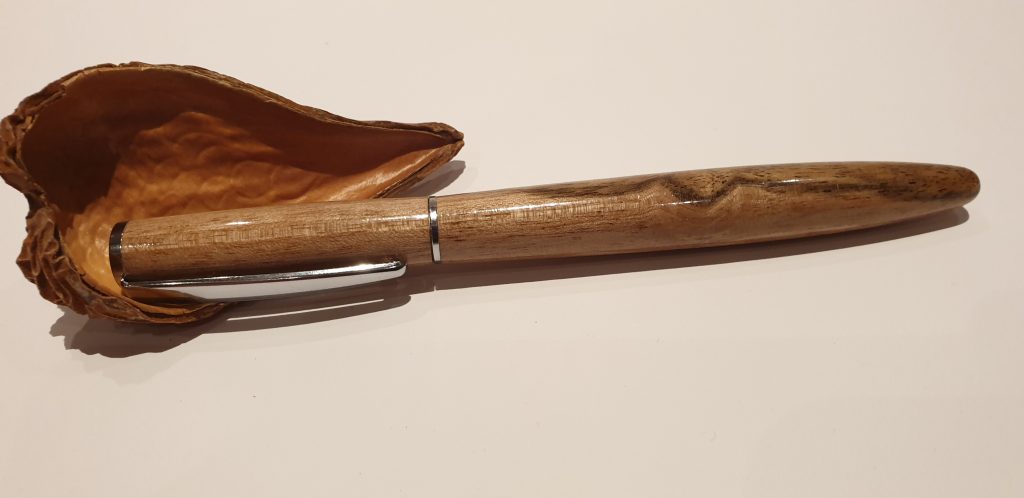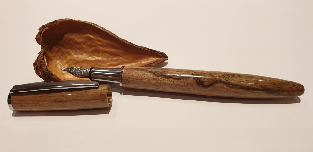 Holz: Nussbaum (Juglans regia) Den europäischen Nussbaum findet man vorwiegend im wärmeren West- und Mitteleuropa bis zu den Mittel- und Schwarzmeerländern. Hauptlieferanten sind Frankreich, Italien, Türkei, Griechenland, und Persien. Auch in Nordindien, Nepal und China anzutreffen neben anderen, wie Juglans mandschurica in Nordostchina und Korea sowie Juglans sieboldiana (=Kurumi) in Japan. Das dunklere Nogal (=Juglans neotropica) wächst in Südamerika, Black Walnut in Kanada sowie im nordöstlichen, südöstlichen und zentralen Nordamerika. Oberfläche: Mehrfach mit Cyanacrylat behandelt, danach bis 12000 Körnung Nassschliff geschliffen, sowie zweifach mit CA-Polish poliert.