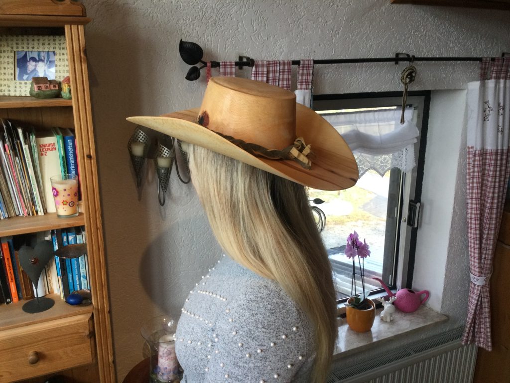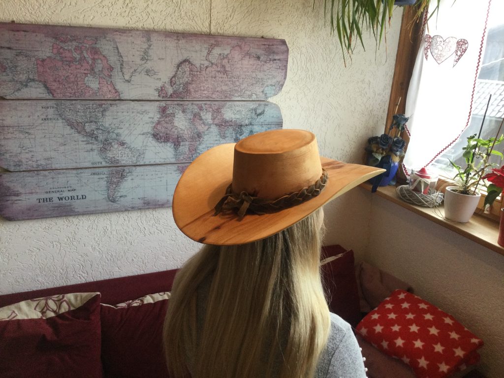 Gedrechselter Holzhut 30. Dezember 2021Drechselarbeiten, Neue BeiträgeKölbl StefanMein erster gedrechselter Hut. Er ist noch 3 mm stark, besser wäre 1,5 mm. Er hat einen Durchmesser von 45 cm. Das Holz ist Buche, ganz frisch geschnitten.teilen teilen merken
