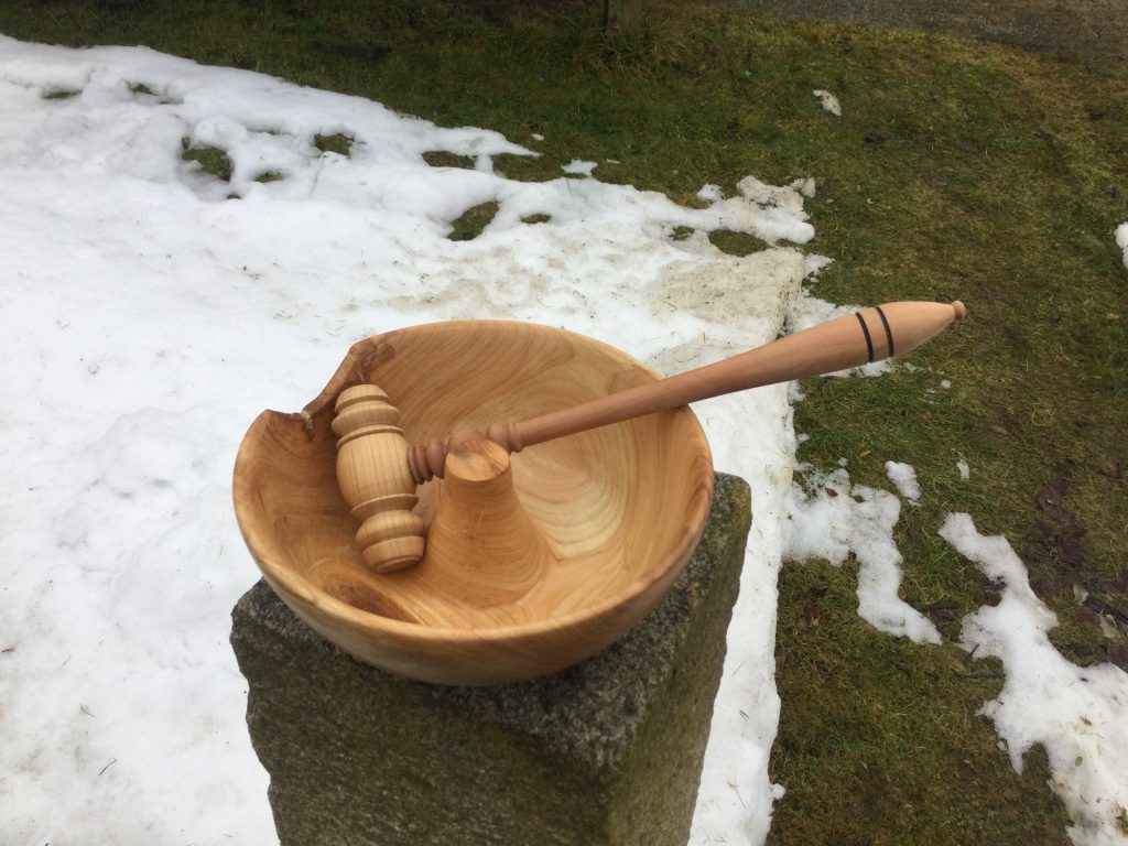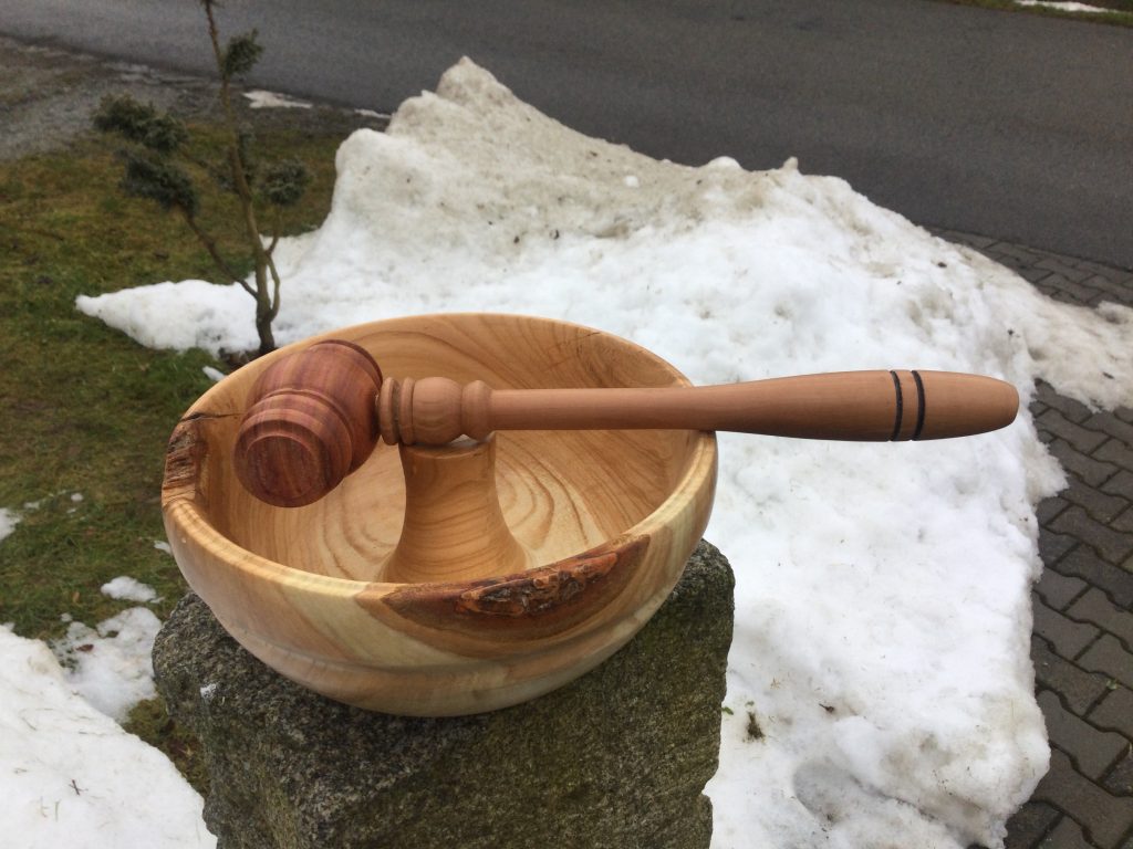 Gedrechselter Nussknacker mit Hammer 27. Dezember 2021Drechselarbeiten, Neue BeiträgeKölbl StefanDer Kirschbaum im Hintergrund war der Ursprung des gedrechselten Geschirrs. Der halbe Stamm war ca. 1 m lang.teilen teilen merken