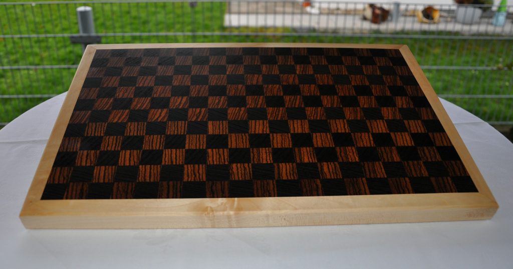 Großes Schneidebrett aus Wenge und Zembranoholz 14. Dezember 2021Neue Beiträge, Schmuck/ObjekteKarl-Heinz Marchlalles.im.griffGroßes Schneidebrett ( 44 x 36 cm) aus Wenge und Zembranoholz. Umleimer aus Esche.teilen teilen merken