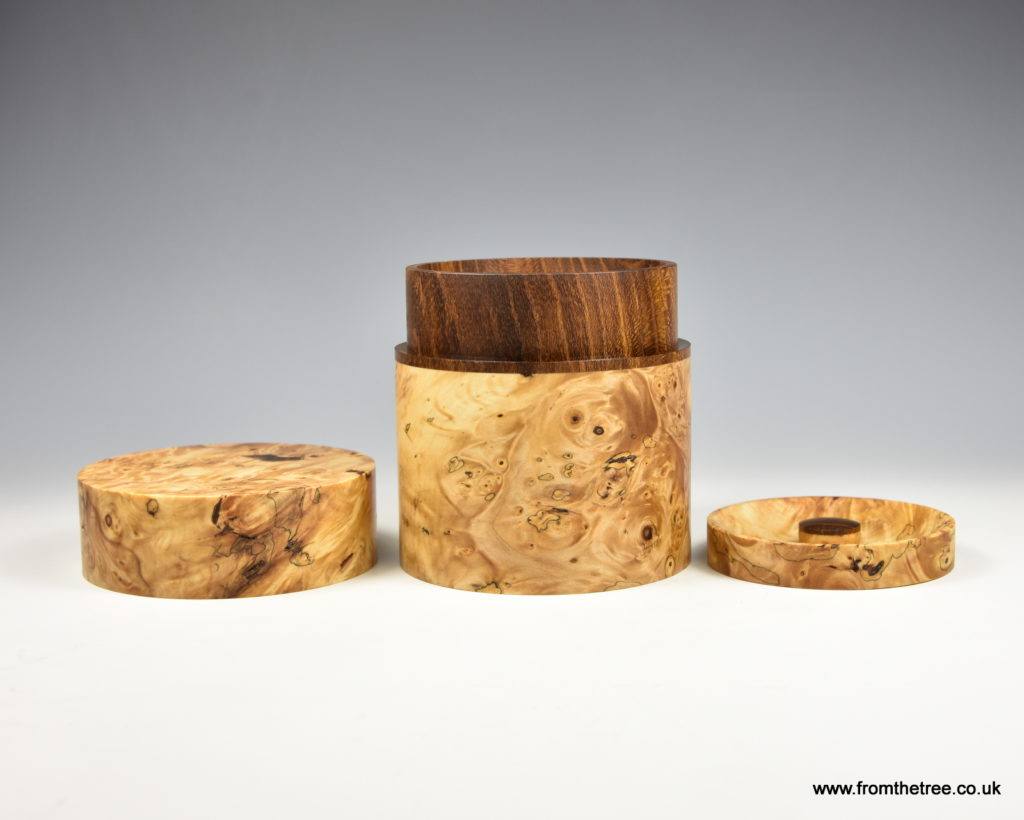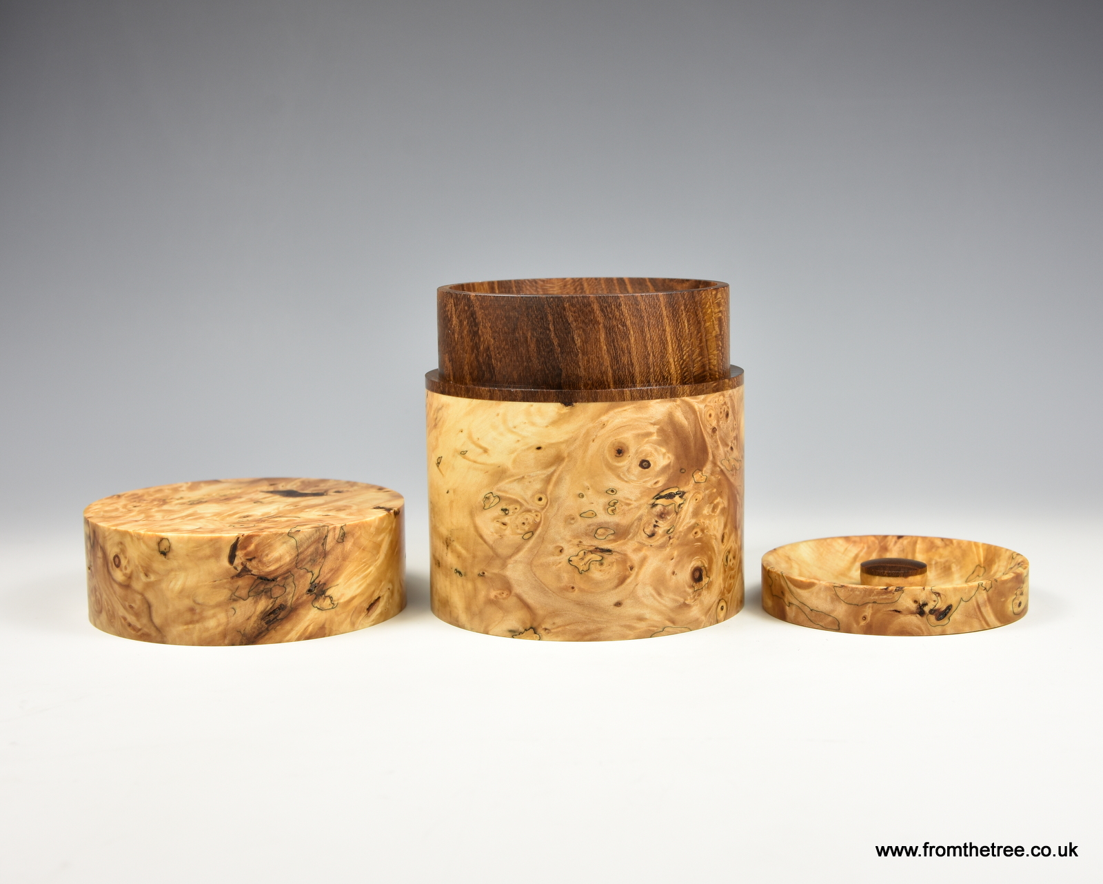 Horse chestnut burr lidded box 14. Juni 2019Drechselarbeiten, Neue BeiträgeGeorge WatkinsA horse chestnut burr & laburnum lidded box. 75mm tallteilen teilen merken