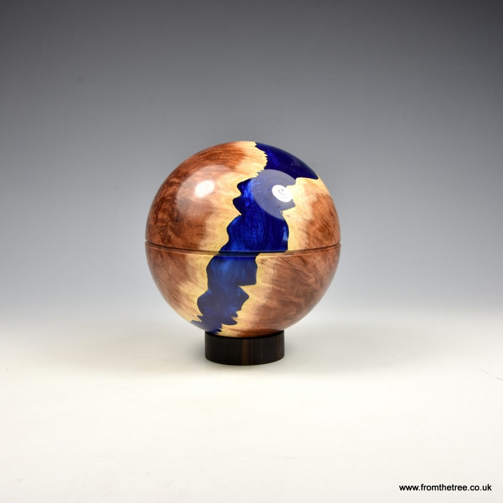 Hybrid sphere box 30. September 2019Drechselarbeiten, Neue BeiträgeGeorge WatkinsTwo pieces of Australian red mallee burr with a blue resin. 75mm in diameterteilen teilen merken