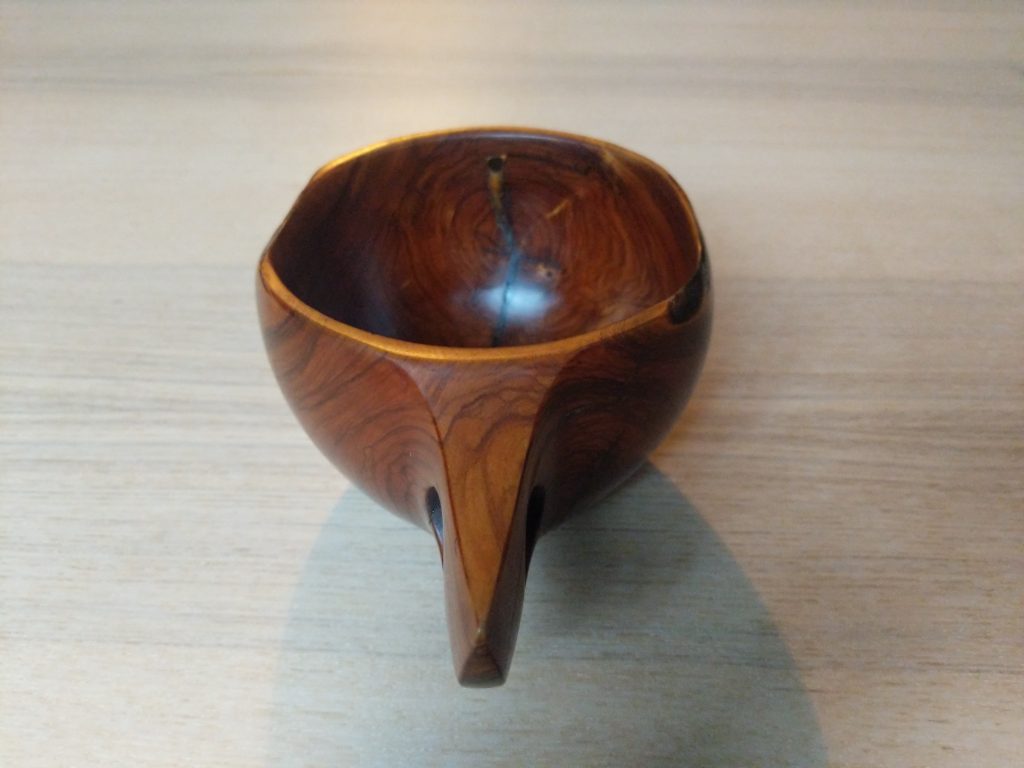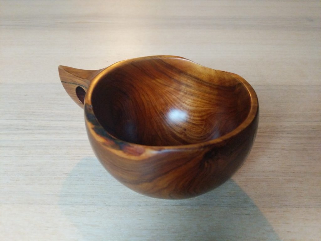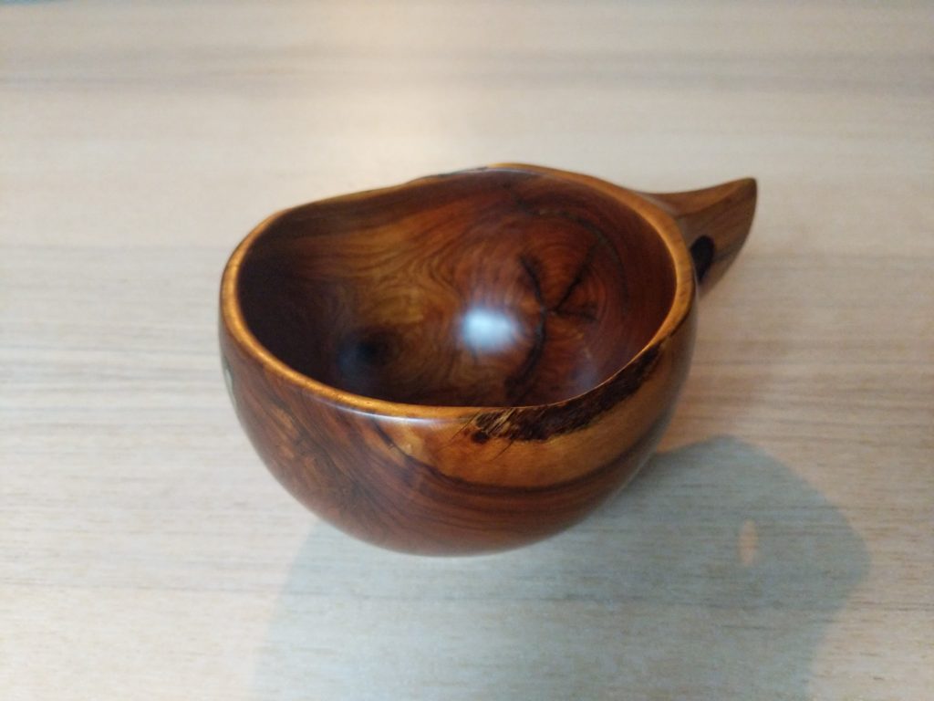 Kuksa-Tasse aus Olivenholz mit Epoxidharz und Urushi 25. August 2021Moebelbau, Neue BeiträgeJustus Kißner@woodandwavesGedrechselt(Innen) und geschnitzte(außen) Holztasse aus wilder Olive.Kern mit Epoxidharz ausgegossen, und Fuki-Uruschi Technik in ca. 12 Schichten aufgetragen.teilen teilen merken
