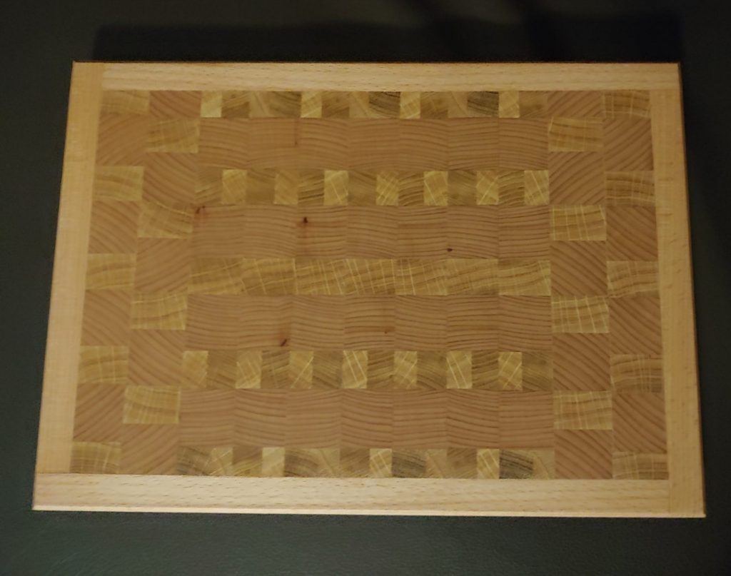 Mittelgroßes Schneidebrett 27. Dezember 2021Neue Beiträge, Schmuck/ObjekteMarchl Karl-Heinz@alles.im.griffMittelgroßes Schneidebrett aus Rotbuchen-, Eichen- und Buchenhirnholz. Umleimer aus Buche.teilen teilen merken