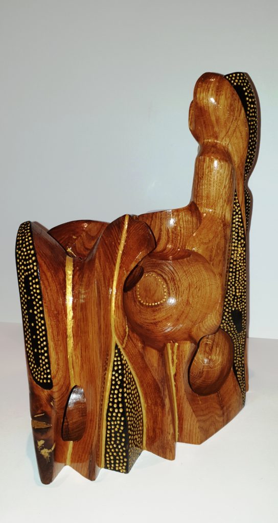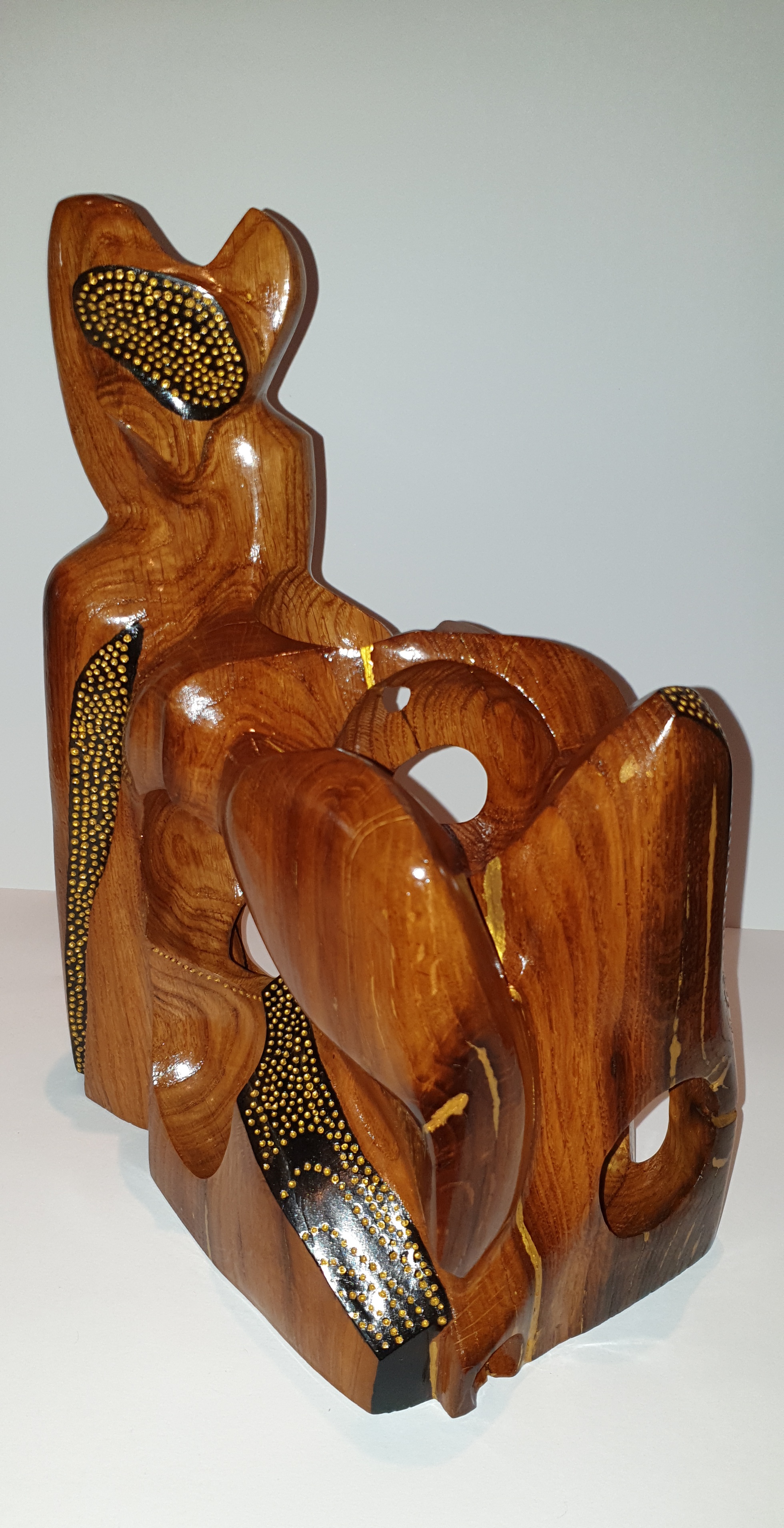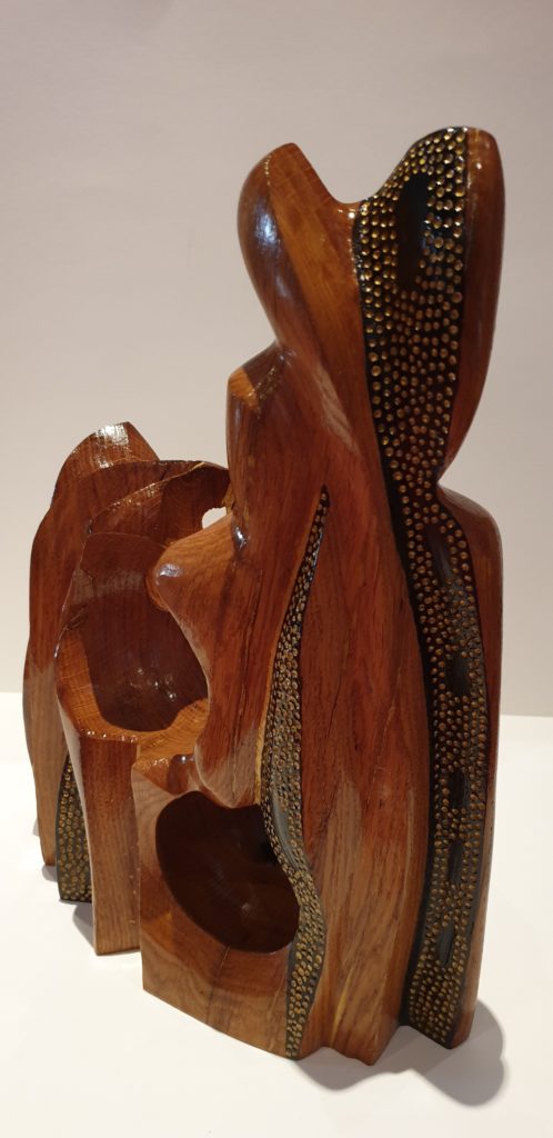 Der Auftrag lautete: Eine Skulptur für den Wohnbereich zu schaffen, die den Charakter des alten Holzes erhält und nicht zu aufdringlich wirkt.