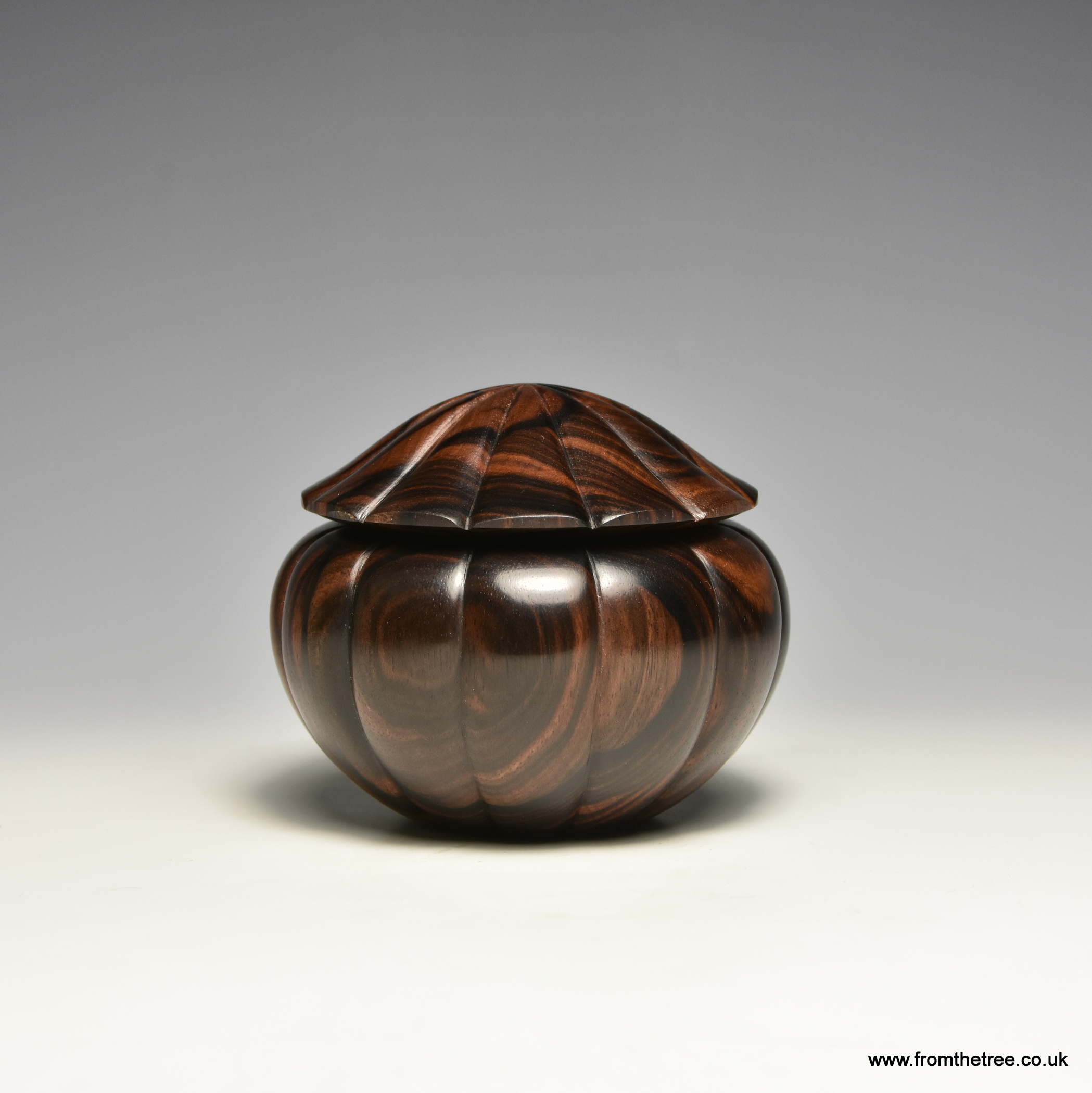 Die Schrift, die man durch das Loch im Deckel sieht ist mit schwarzem Furnier eingelegt, genauso wie die Wimpern beim Auge auf der Innenseite des Deckels. Ich will damit sagen, das nichts aufgemalt ist.