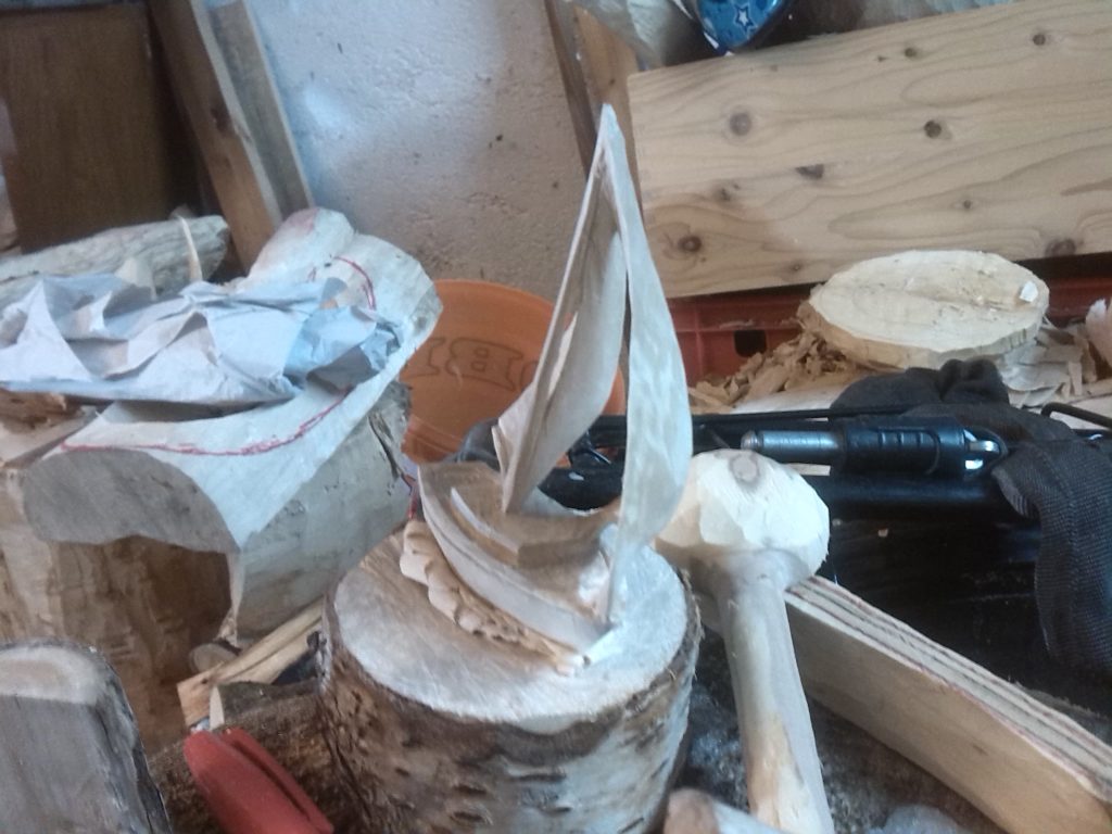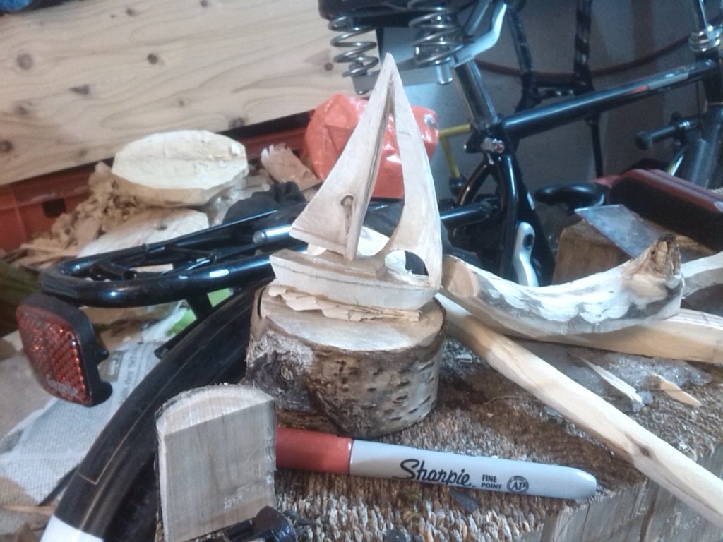 Dieses kleine Segelboot wurde von mir aus einem Stück Birkenholz geschnitzt.