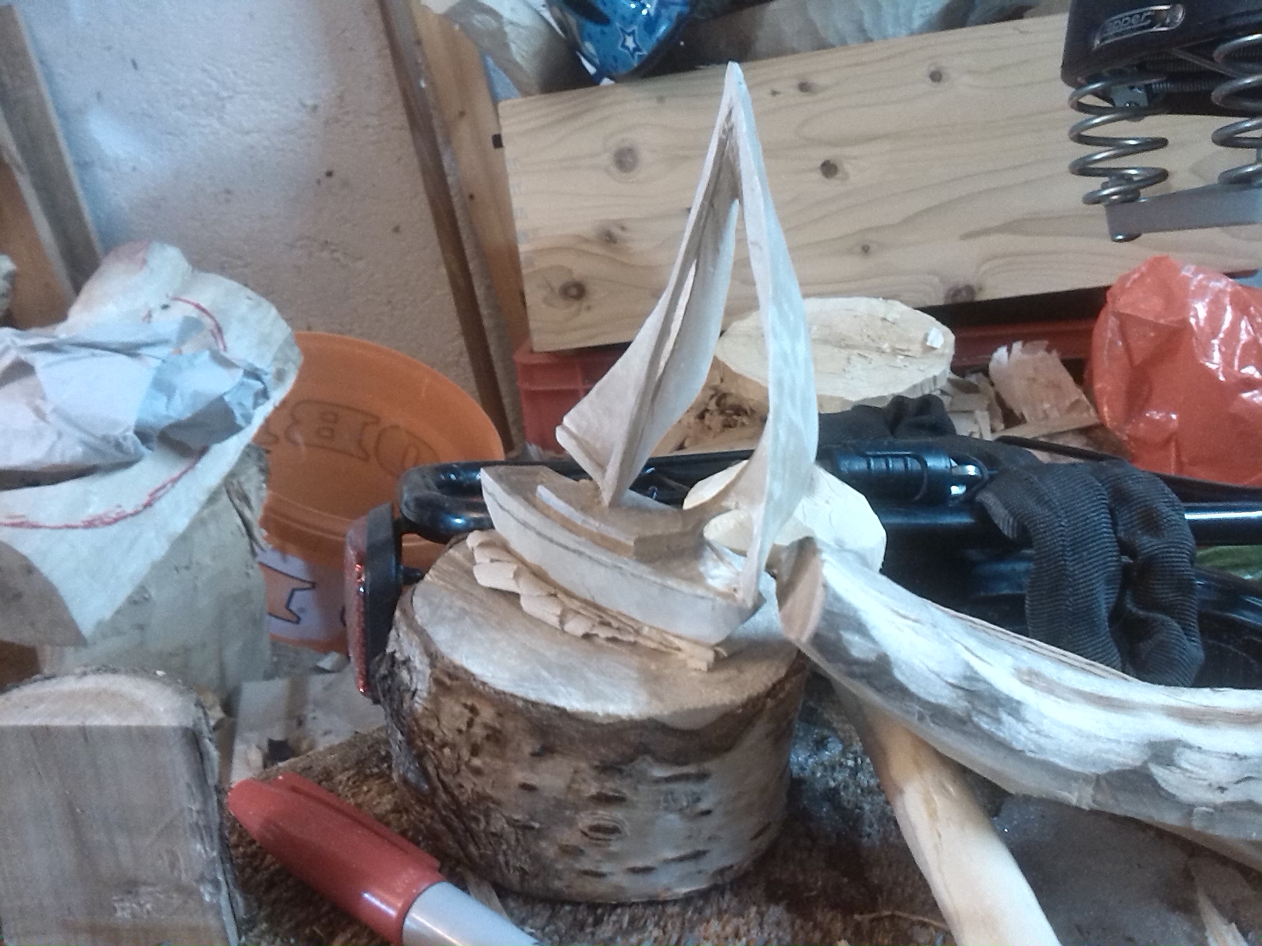 Dieses kleine Segelboot wurde von mir aus einem Stück Birkenholz geschnitzt.