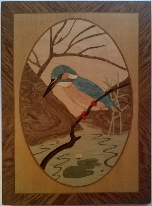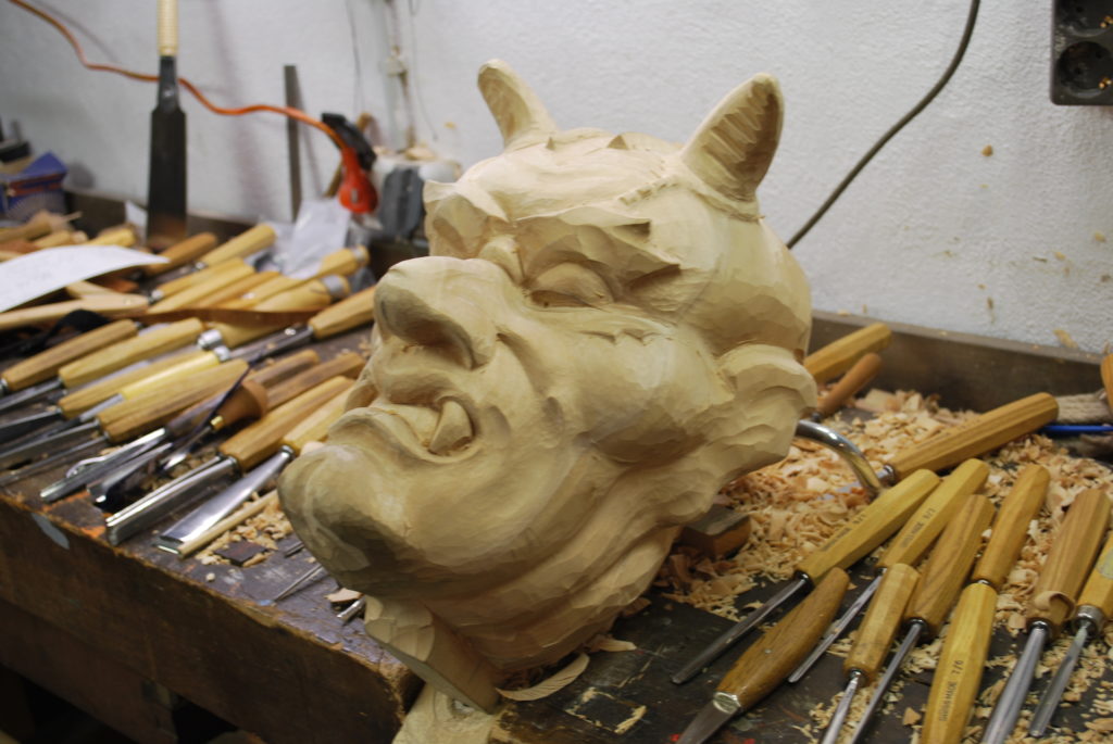 Dieses Feder wurde von mir aus einem Stück Holz geschnitzt (Mirabel) Die Höhe des Feders beträgt etwa 10 cm. Das Stück wurde mit dem Dechsel grob in Form gebracht und danach mit Schnitzmessern bearbeitet. Die Details wurden mit den Kerbschnitzmesser von der Firma Pfeil gemacht.