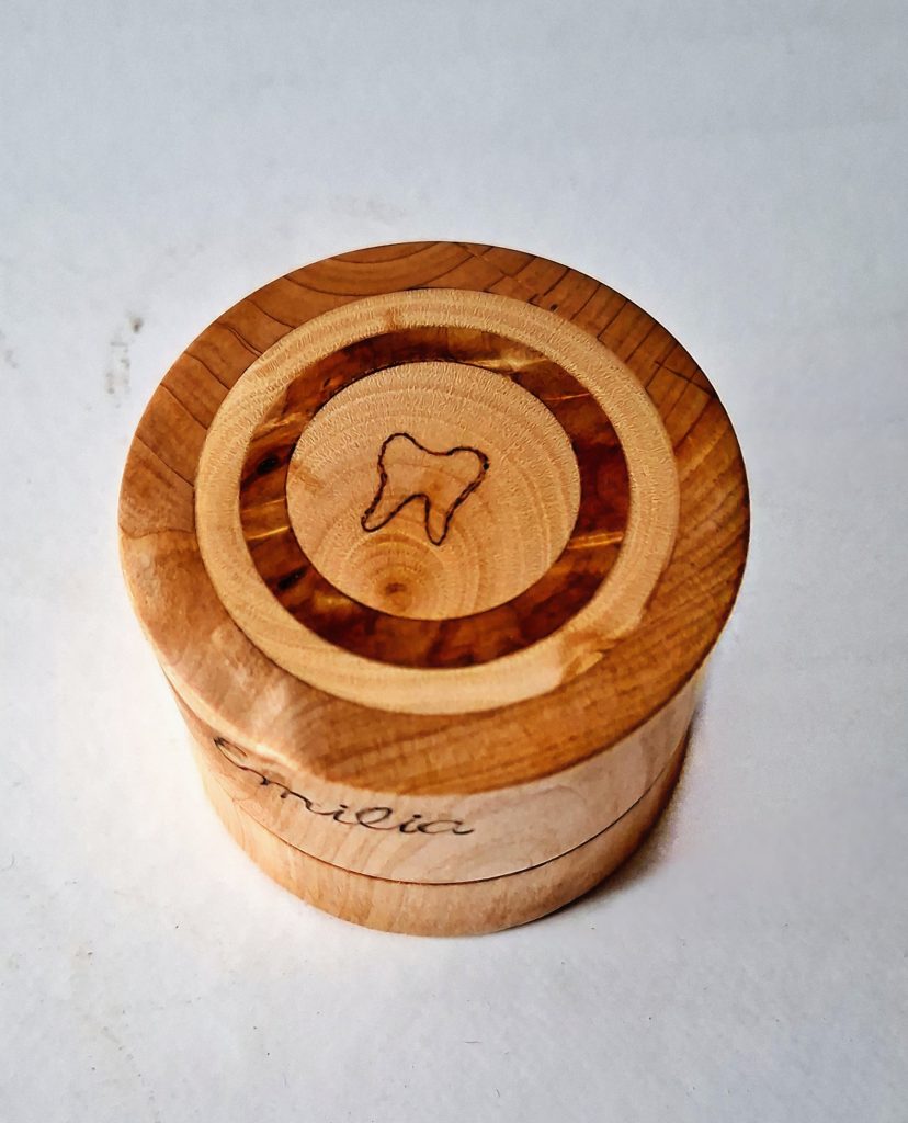 Zahnfeedose aus Thuja , der Deckel mit einem Inlet aus Bergahorn und