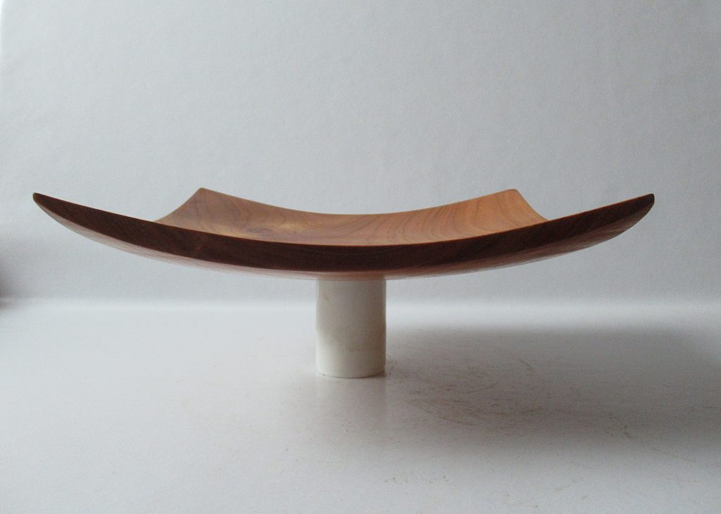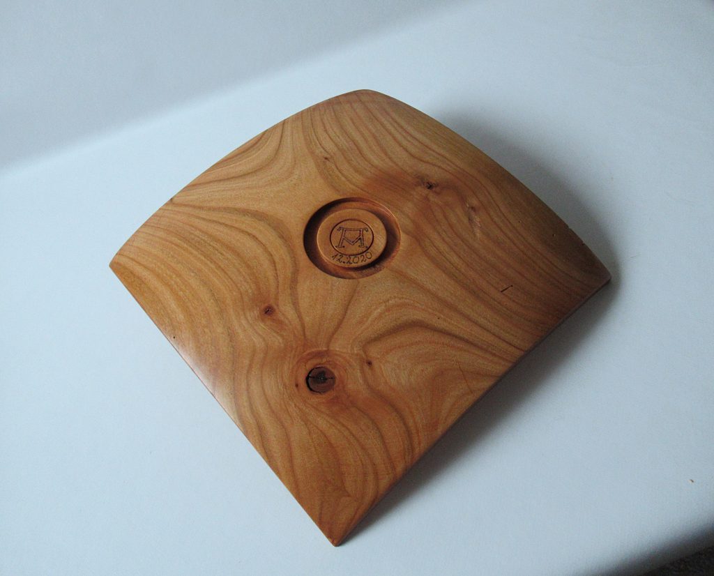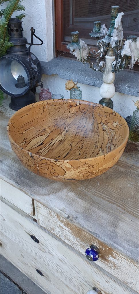 Naturrandschale aus Pflaumenholz, 30cm im Durchmesser, 13cm hoch. Oberfläche: geschliffen bis 320korn, 2x eingelassen mit Danish Oil, 3fach poliert, finish mit Carnaubawachs.