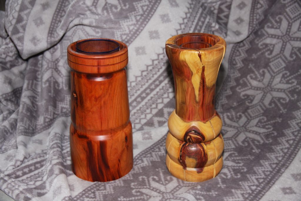 Die Vasen sind ca. 25 cm hoch und geölt.