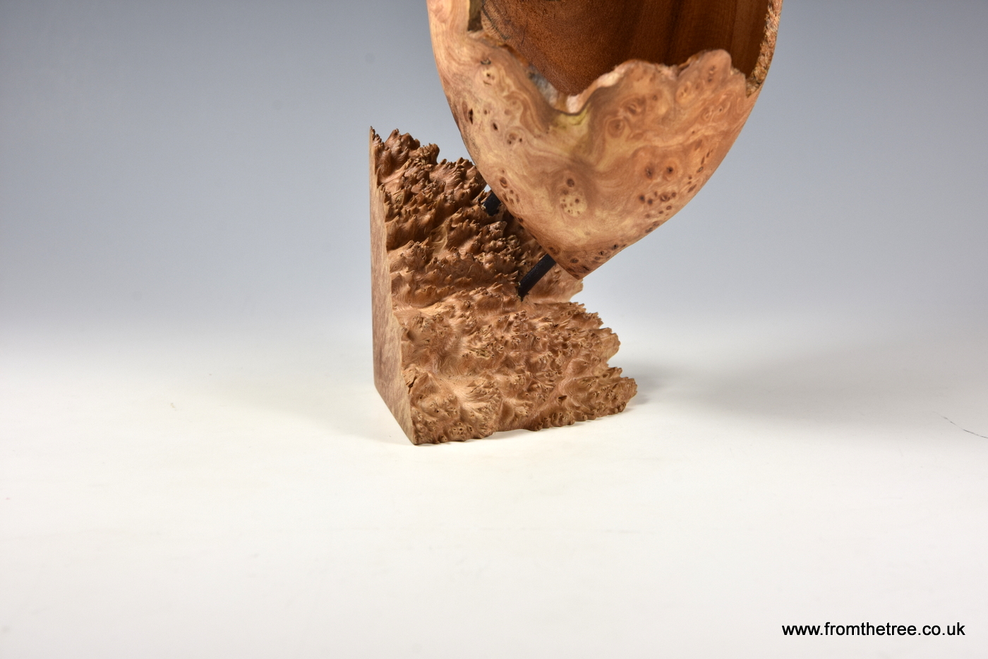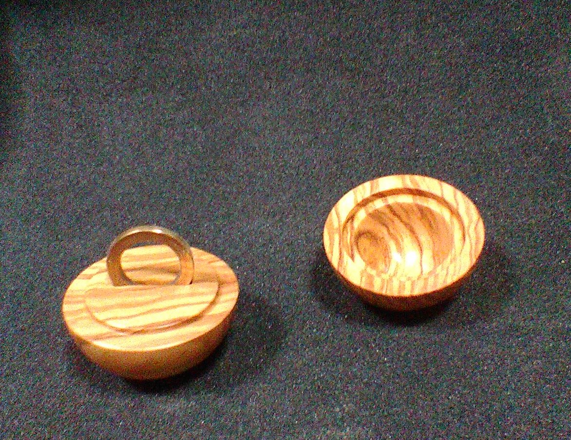 Über Kreuz gedrehte Kugel, innen für einen Verlobungsring als Dose ausgedreht. Werkstätte für Nützliches und Feines, Christoff Guttermann.