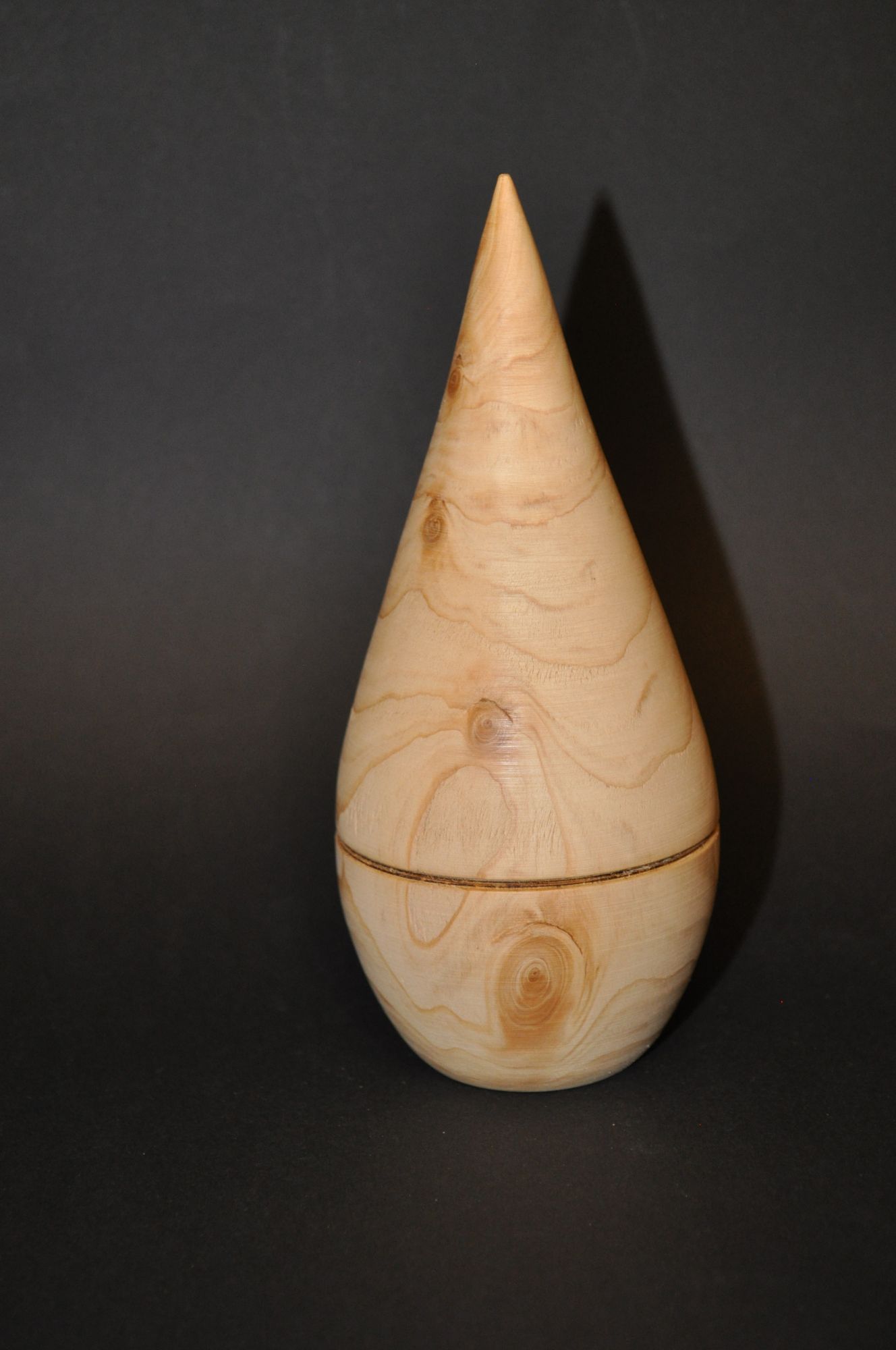 Dose mit hohlem Spitzdeckel aus Wacholder. Höhe: 16,5 cm, ø 7 cm
