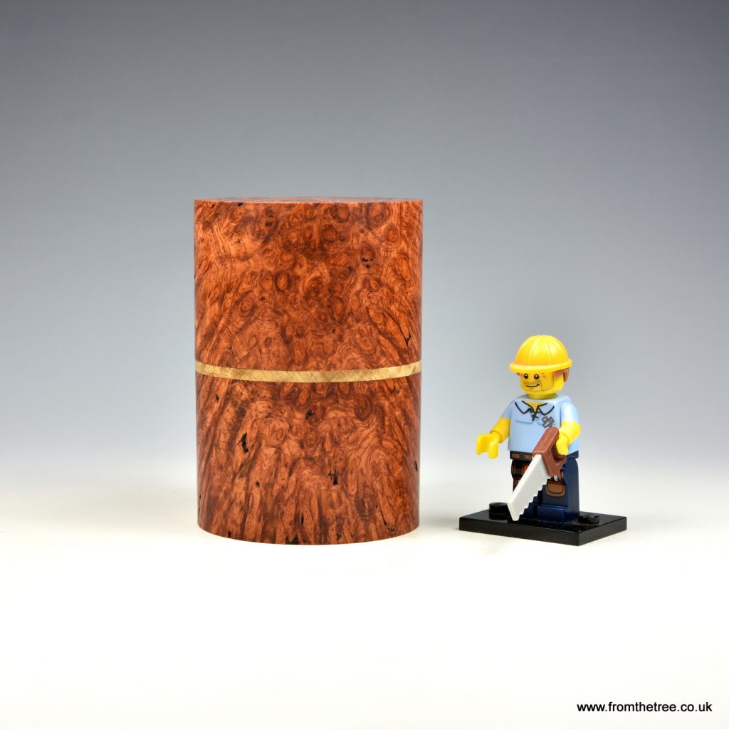 A burr walnut and sycamore lidded box with pewter inlay in the natural fissures.