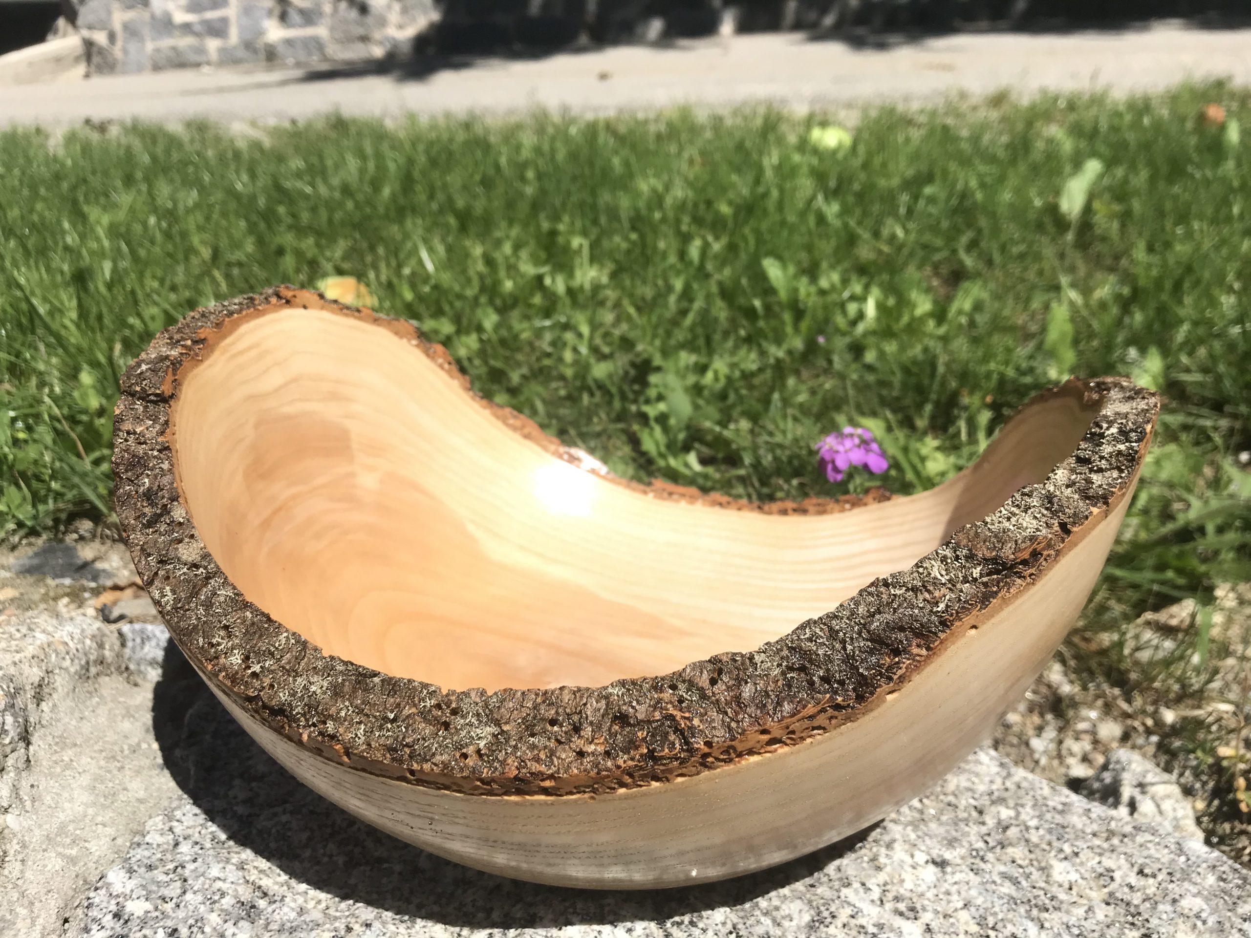 Schale aus zusammengewachsenen Thuja-Doppelstamm 17×6 cm, Oberfläche: Tungöl von DICTUM.