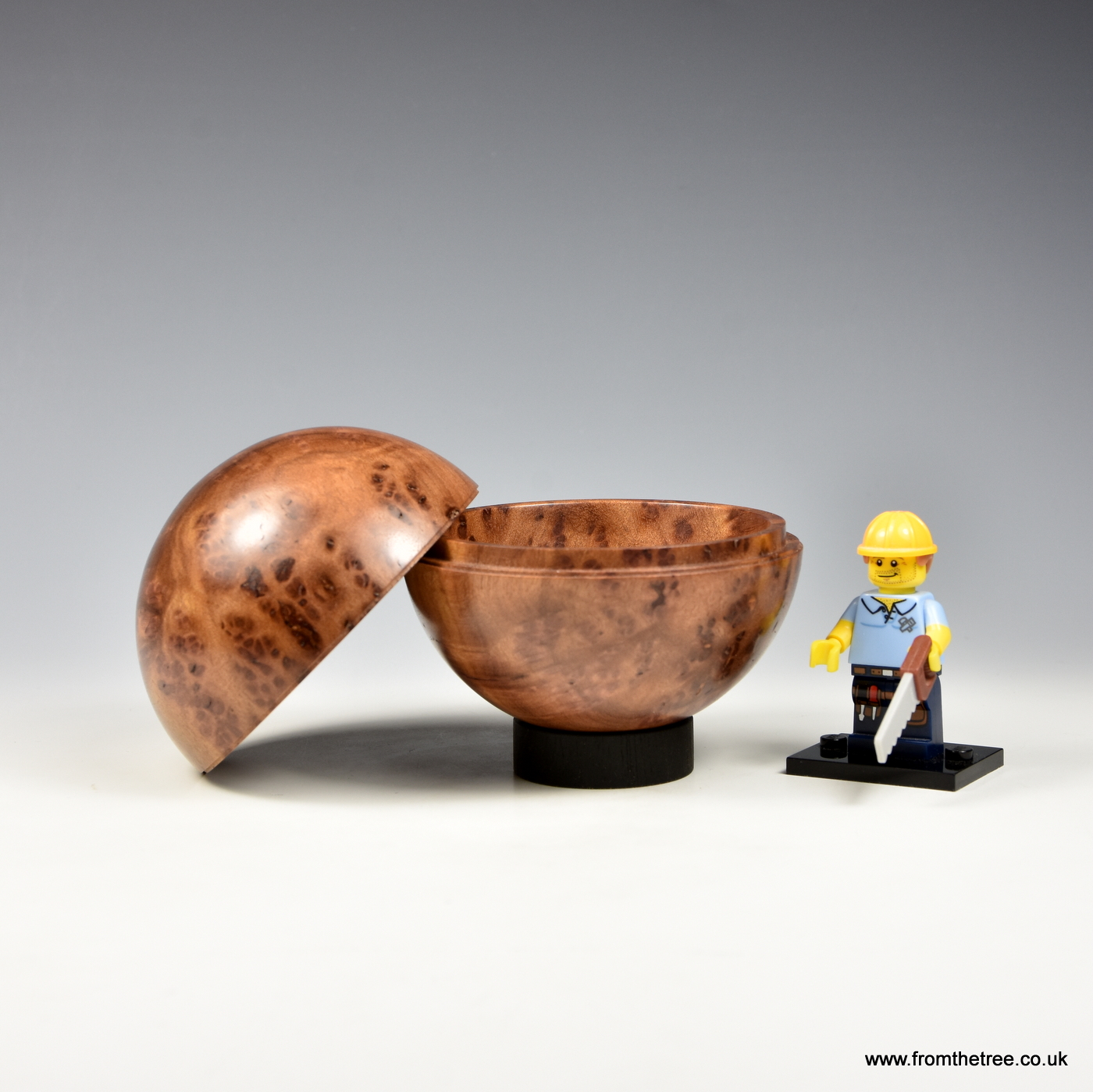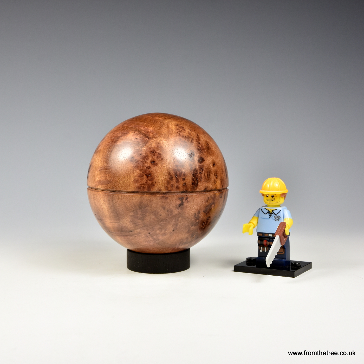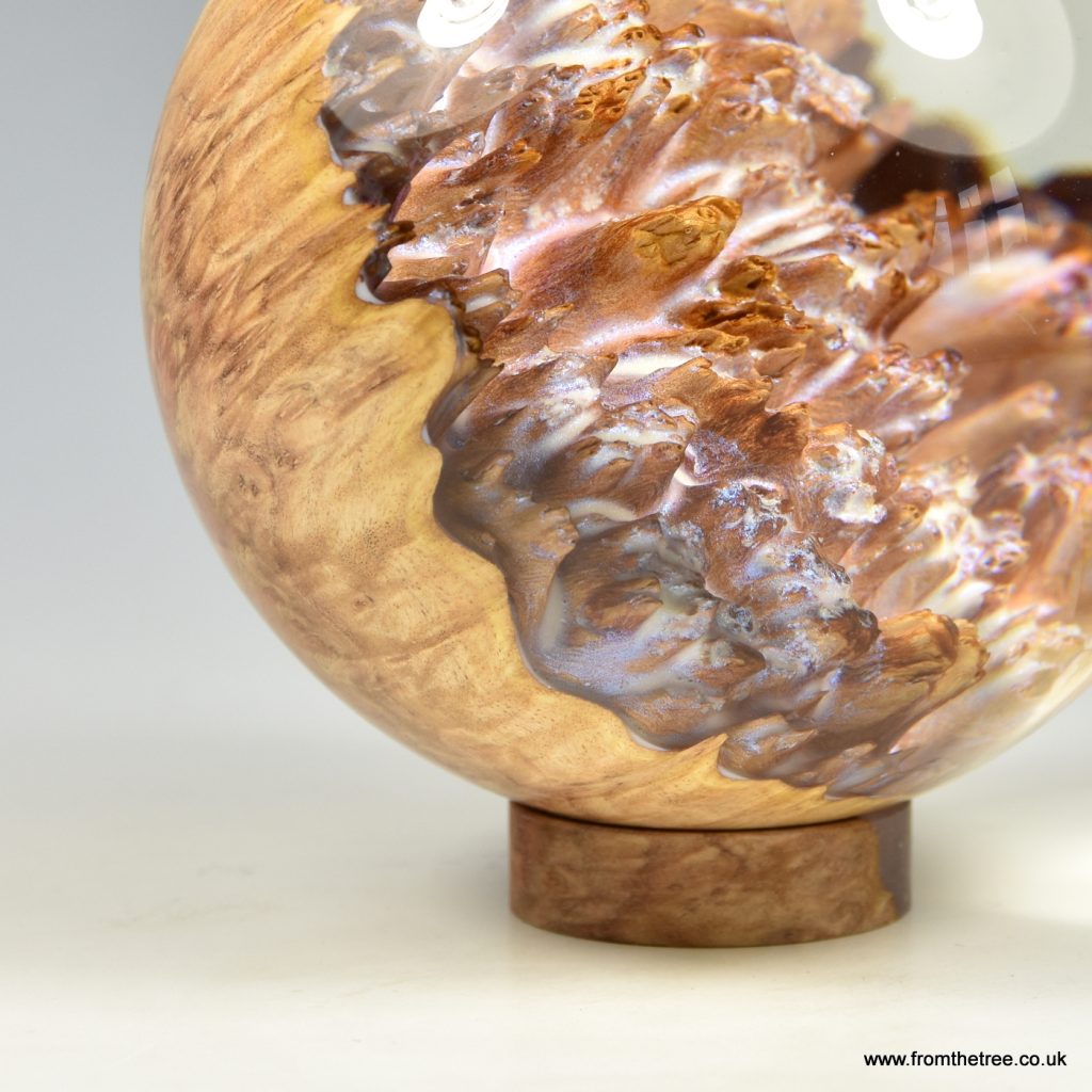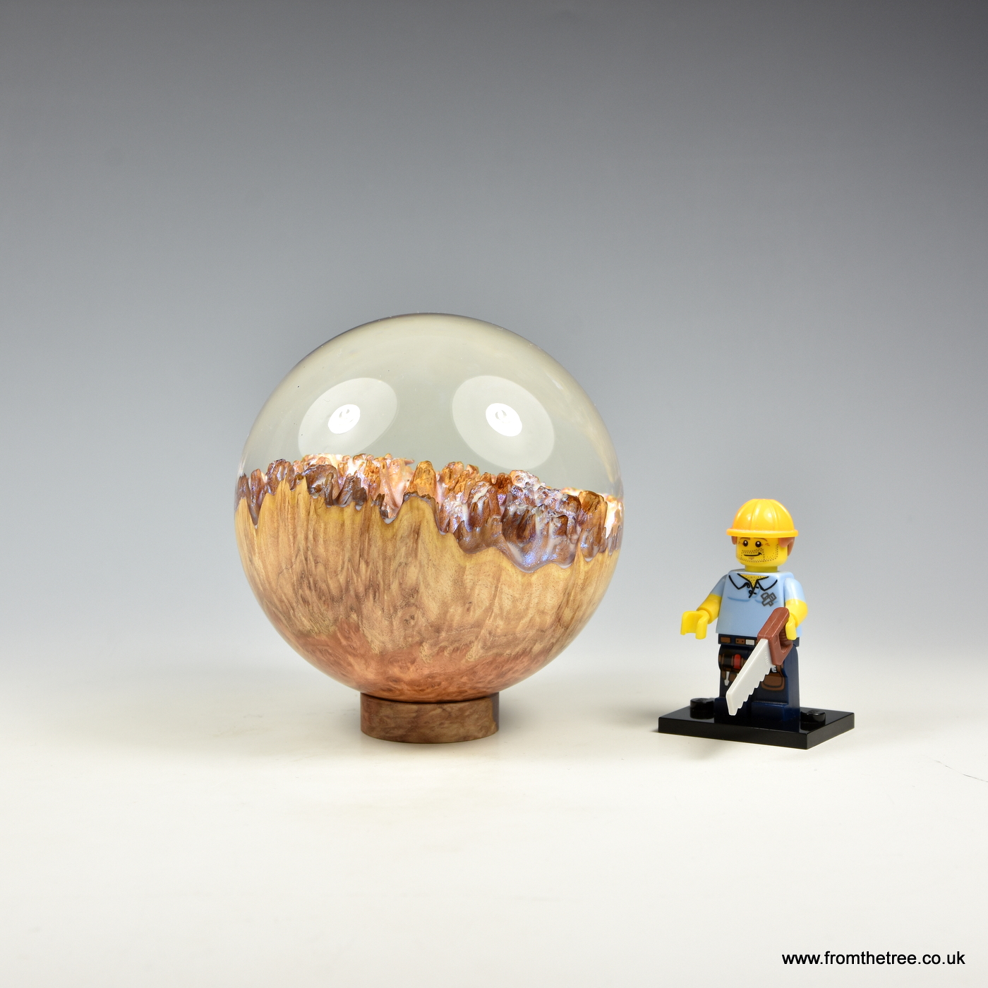 An Australian burr hybrid sphere with clear polyurethane resin.