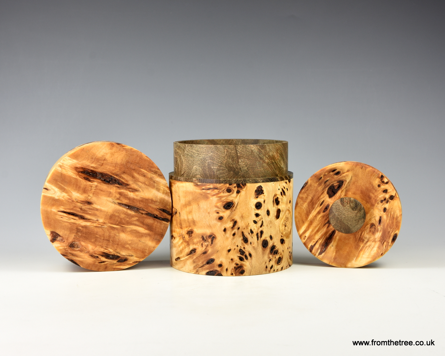 Dose aus alten Apfelbaumast , 9 x 14 cm 4 x mit Tungöl von DICTUM eingelassen.