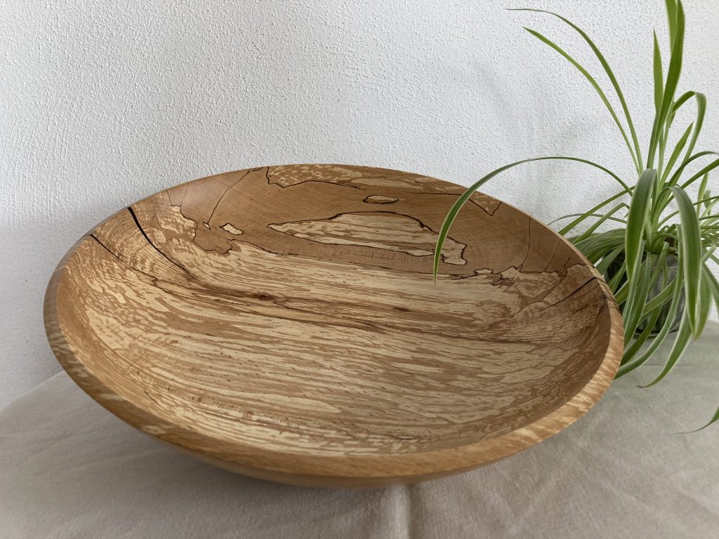 Schale aus Olivenstamm, behandelt mit Danish Oil. Durchmesser 30 cm.