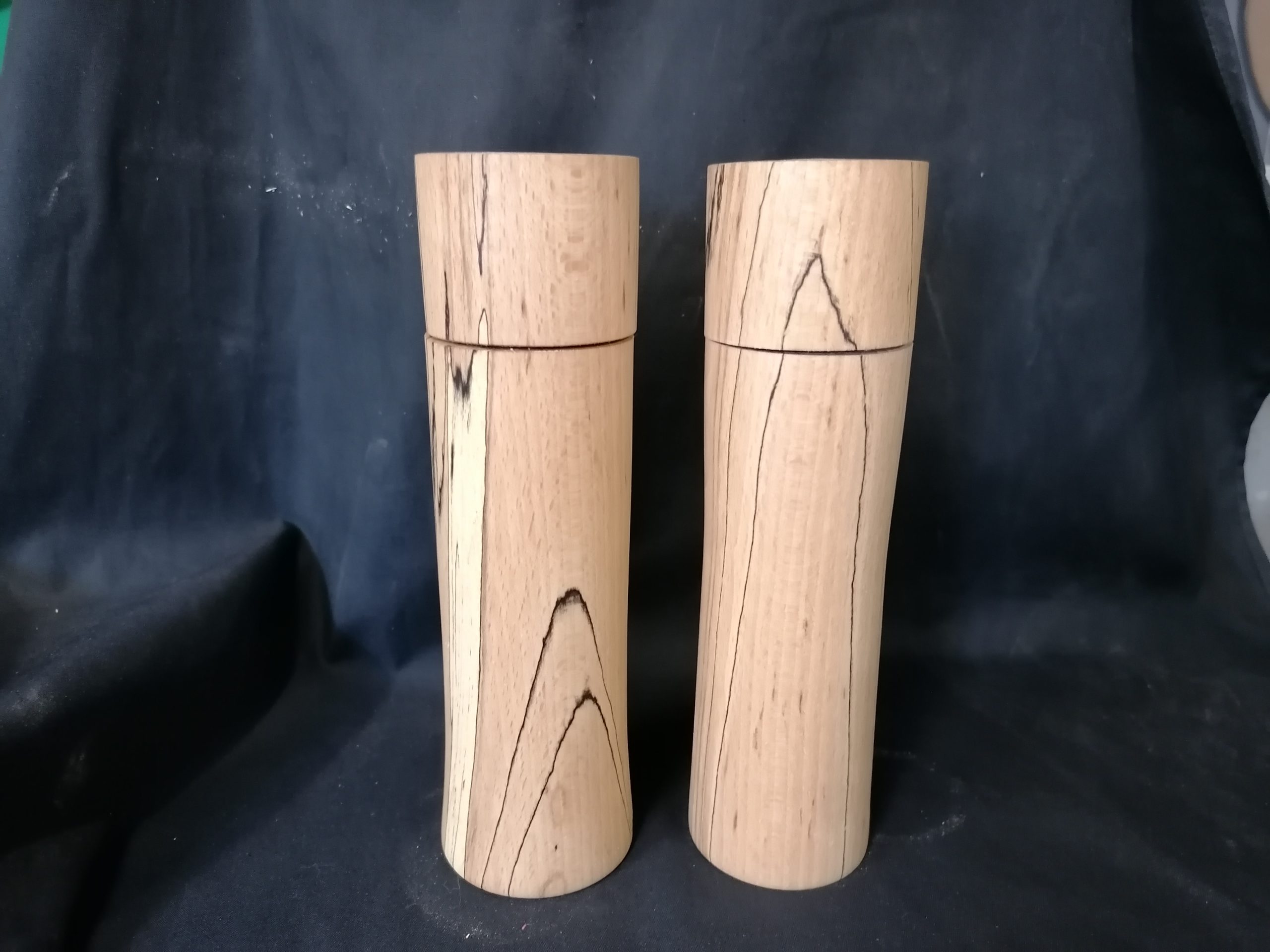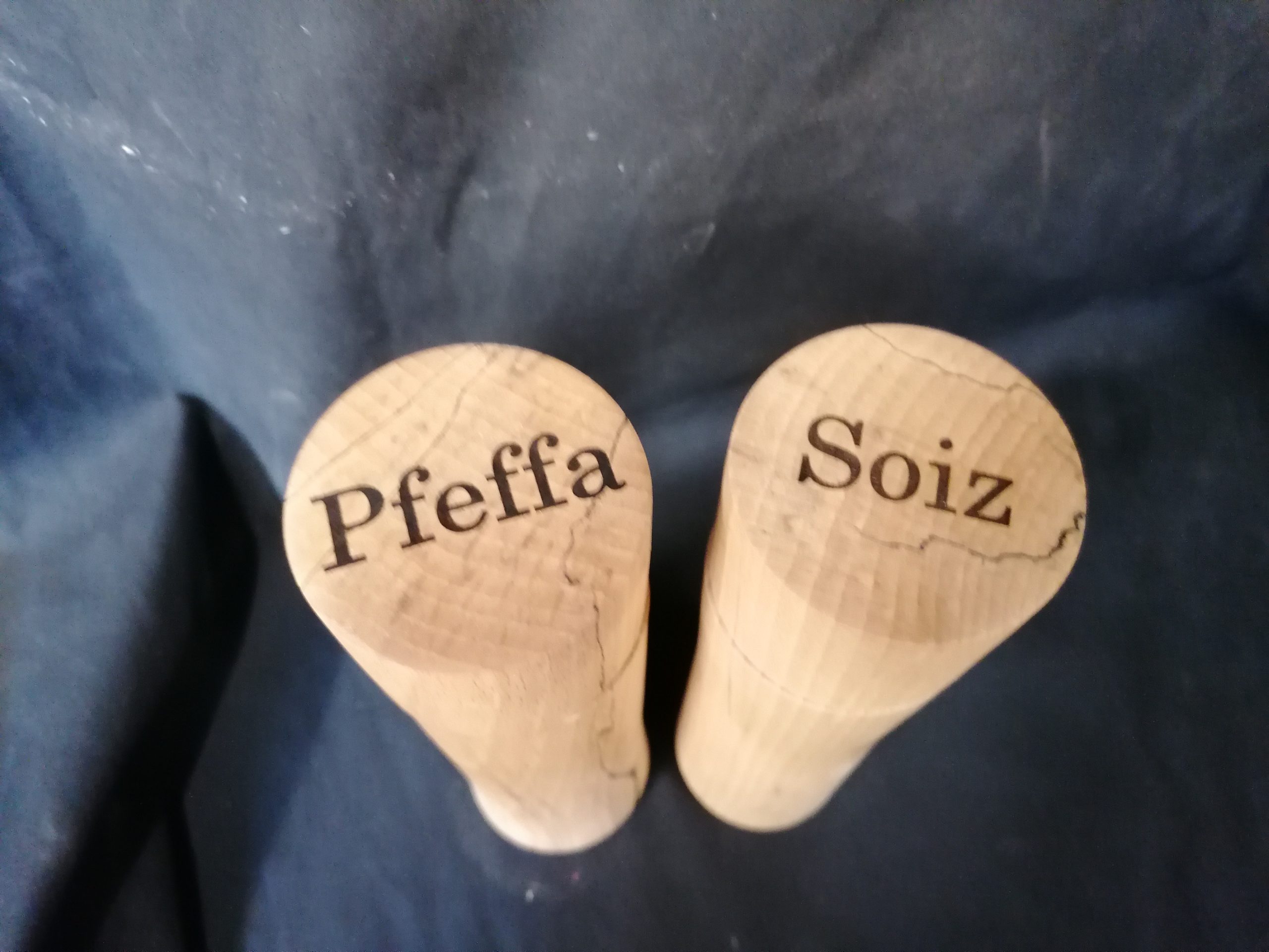 Graviertes Gewürzmühlen Duo aus gestockter Buche