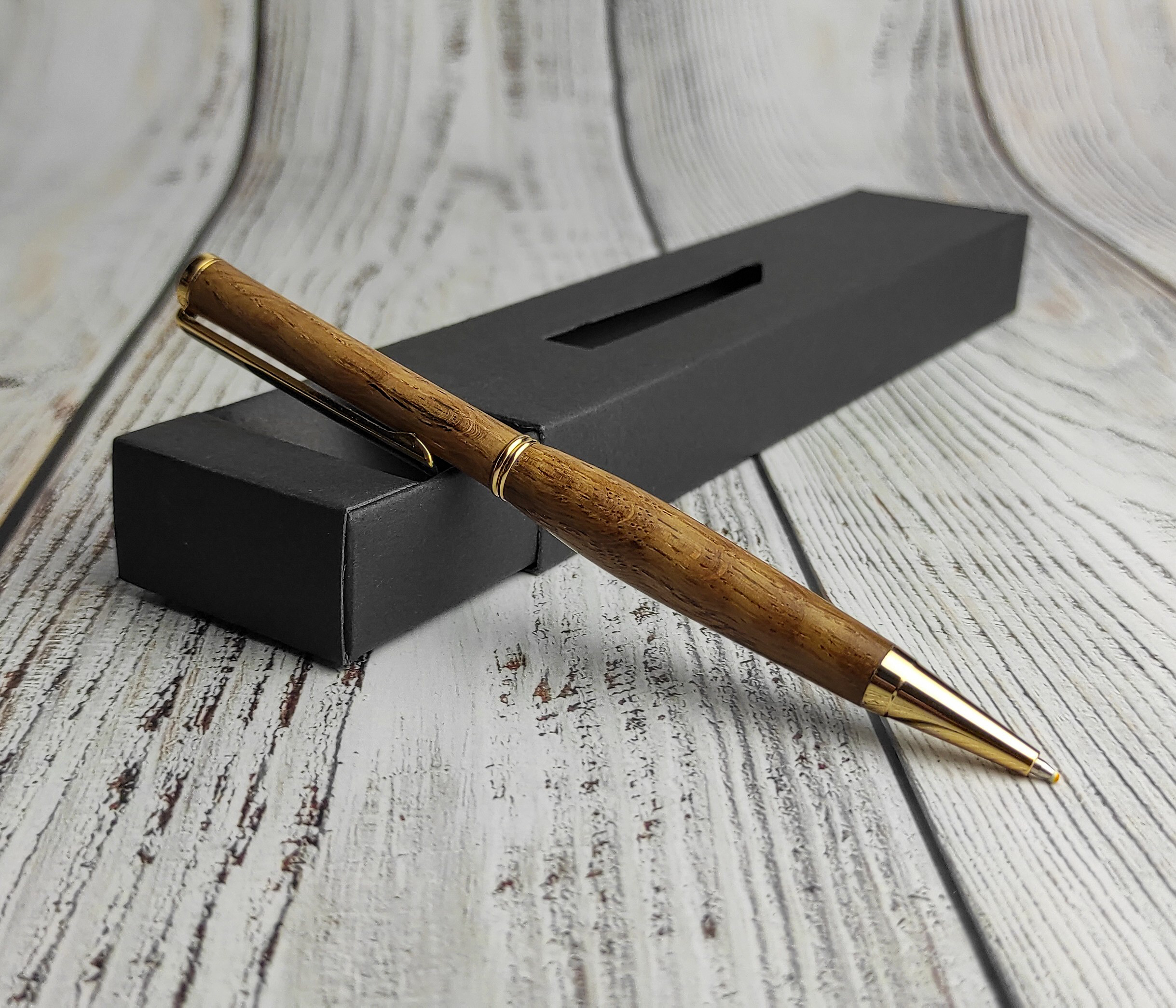 Die Kugelschreiber in Gold und Silber wurden aus Eibenholz gedrechselt. Die Oberfläche wurde bis Körnung 600 geschliffen und danach mit Walnusswachs sowie Walnussöl behandelt. Den Bausatz Modell Paris, Walnusswachs, Walnussöl, sowie die Presse für den Zusammenbau der Kugelschreiber gibts bei Dictum 👍