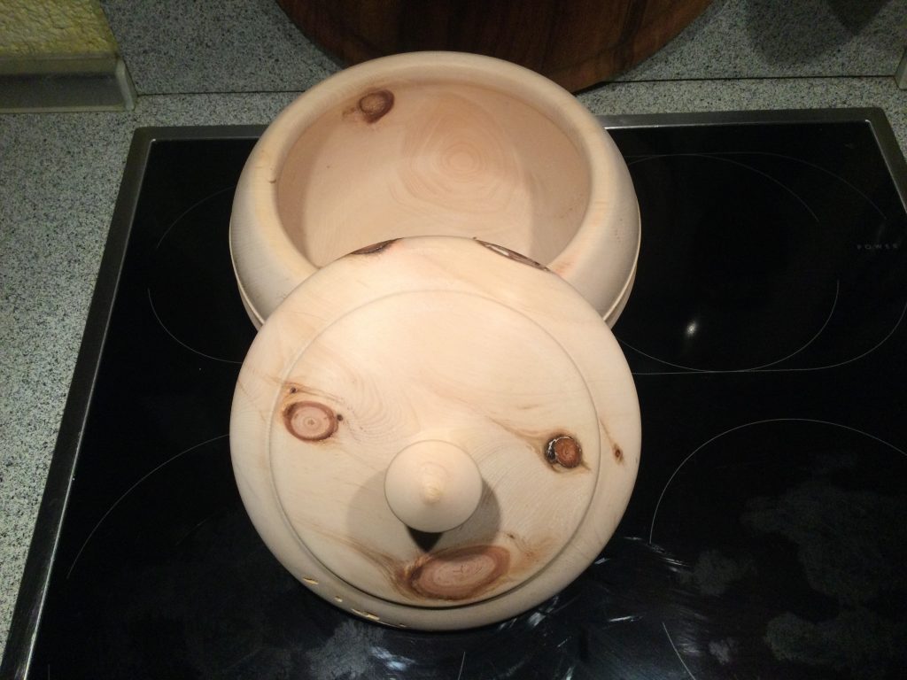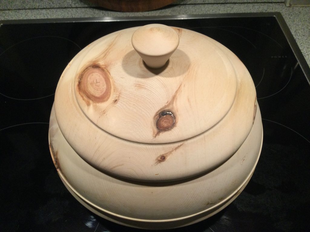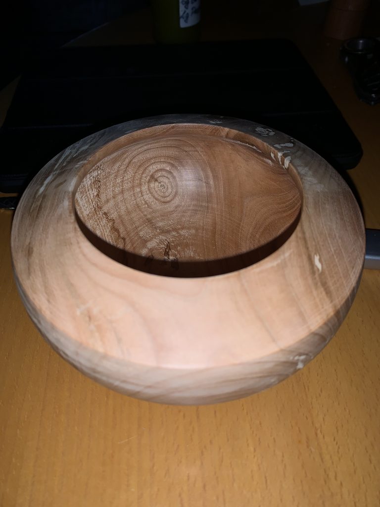 Die Schale ist 16 cm im Durchmesser, und 8 cm hoch. Ich habe sie vor gedrechselt, und in nur 10 Tagen neben dem Holzofen getrocknet. Sie ist absolut trocken und weist keine Risse auf und behält die Form.