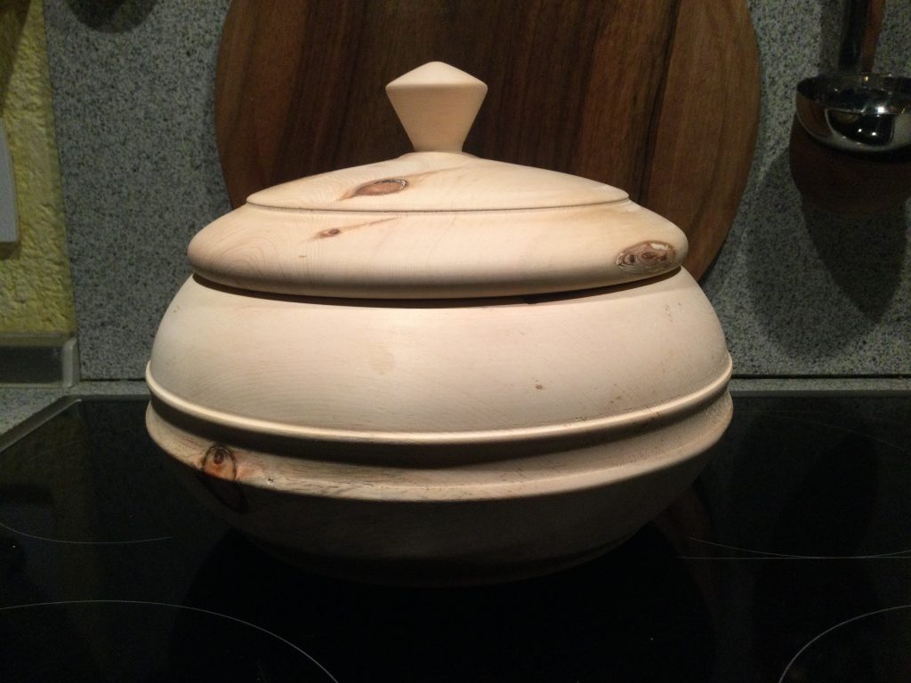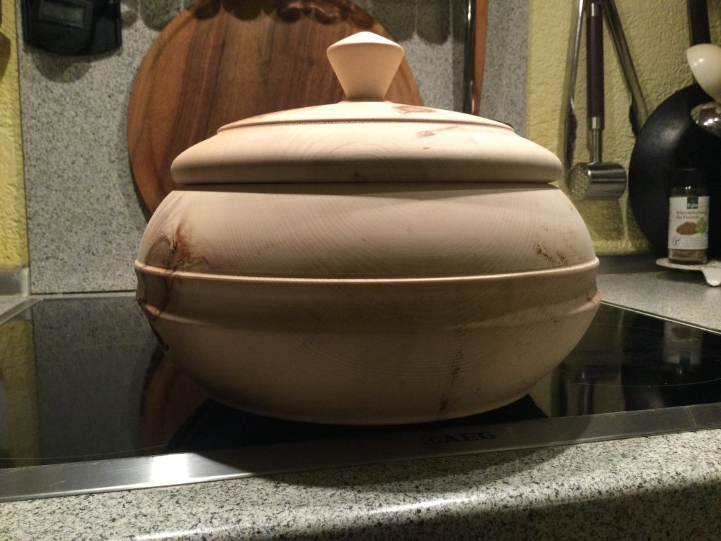 Der Sohnemann wünschte sich ein kleines Schälchen, um seine Schätze auf seinem Nachttisch zu lagern. Seine Wahl war ein kleines Stück Esche. Gedrechselt, geschliffen & gewachst, hat er eine Riesenfreude damit… Durchmesser etwa 15 cm hoch etwa 4 cm.