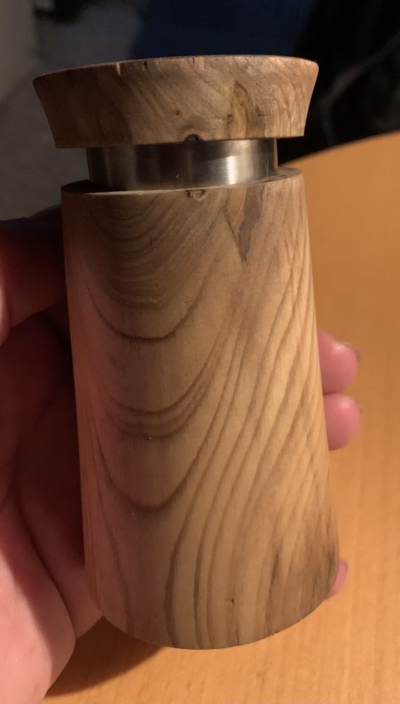Die kleine Dose zur Gewürzaufbewahrung habe ich aus Buchenholz gedrechselt. Nachdem das Drehteil gefertigt war ist der Hohlraum durch eine Bohrung mit einem Forstnerbohrer entstanden. Abschließend habe ich das Holz mit einer Mischung aus Orangenöl und Leinöl eingelassen.