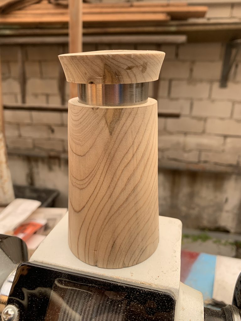 Wollte mal diese beiden Materialien miteinander verarbeiten und habe die Dose aus Magnolienholz gedrechselt und dann ein Edelstahlrohr eingepasst. Der Deckel sitzt auf Abstand zum Korpus um beide Materialien sichtbar zu machen. Das Holz wurde abschließend 2 mal mit Leinöl eingelassen.