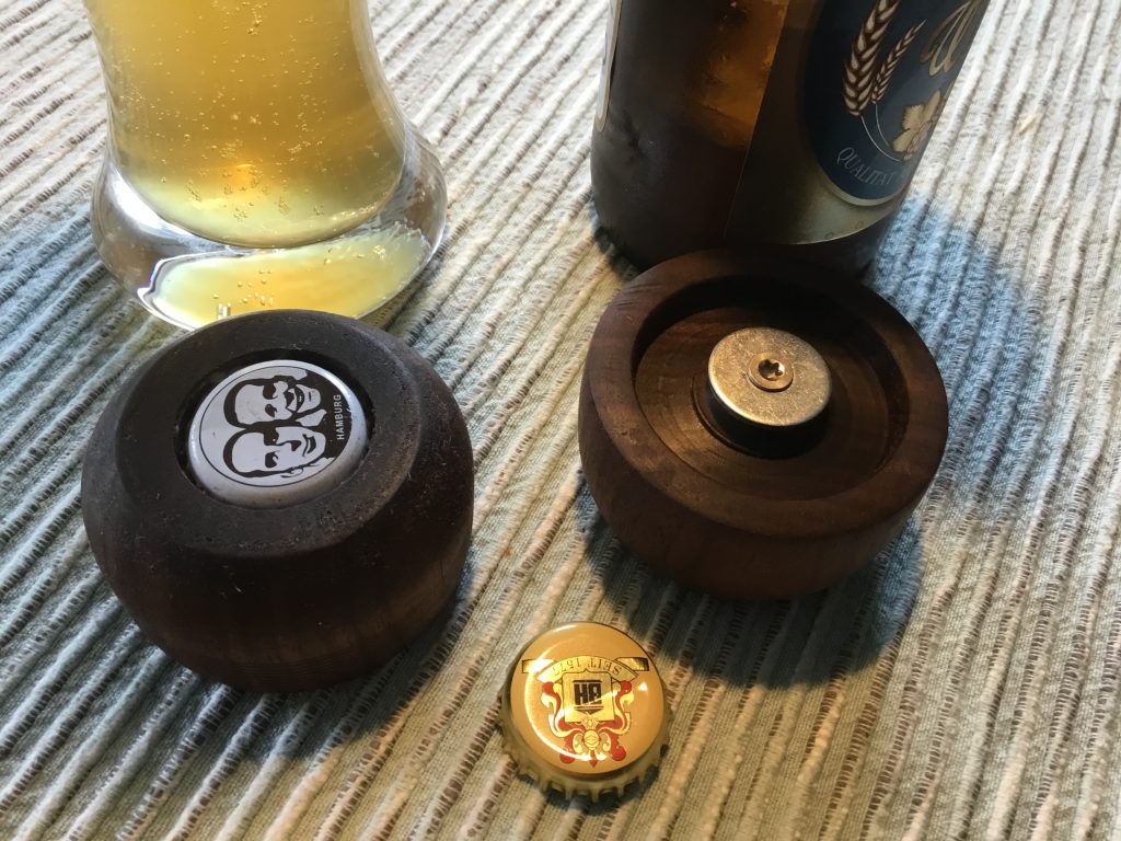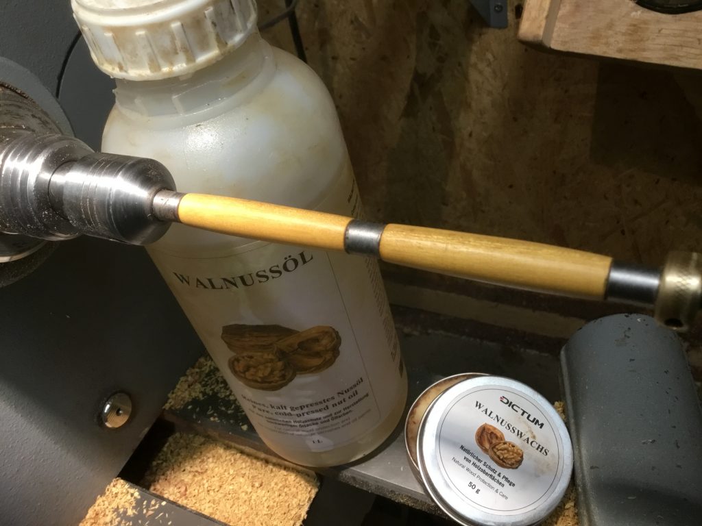 Der Flaschenöffner wurde aus Nordamerikanischen Walnussholz gedrechselt. Die Oberfläche wurde bis Körnung 400 geschliffen und zum Schluss mit Walnussöl behandelt.