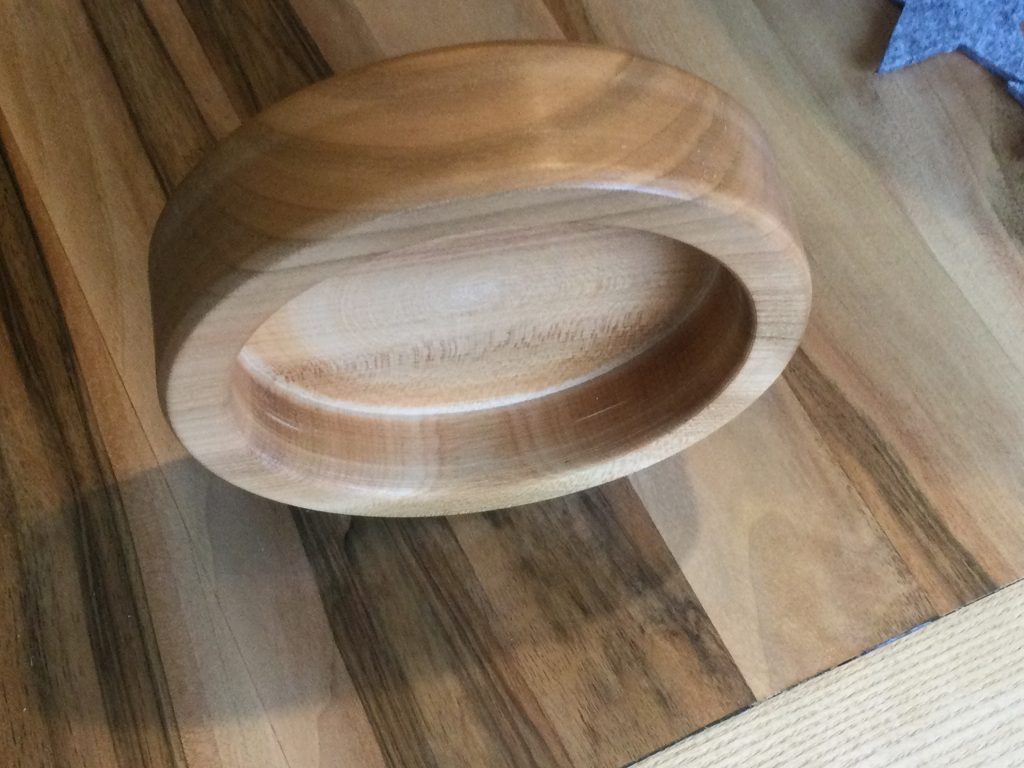 Als kleines Geschenk für eine Einladung ist dieser kleine Teller aus Kirschbaum entstanden. Geschliffen bis Körnung 400 und danach poliert mit den Micro-Mesh Pads aus dem DICTUM Sortiment. Kirschbaum lässt sich wunderbar polieren. Die Endbehandlung erfolgte mit einer Schellack Politur. Auf den Teller kommen dann noch ein paar Leckereien, die dann mitverschenkt werden.