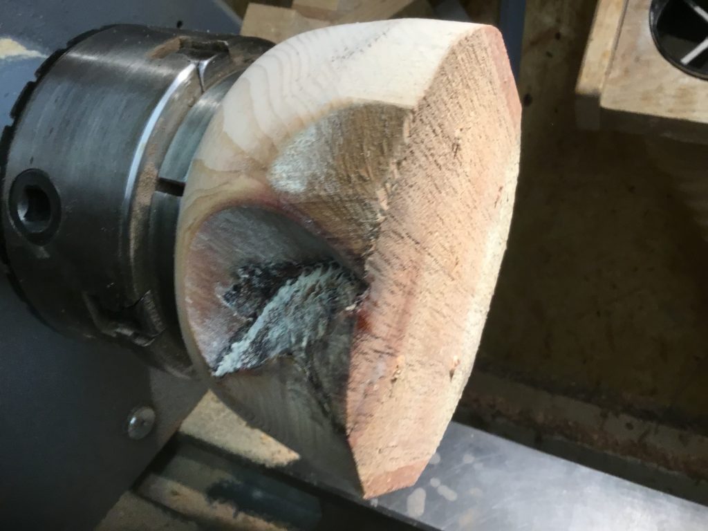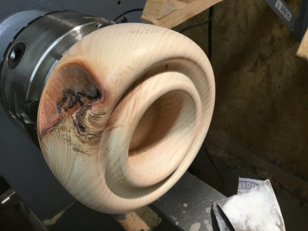 Der Sockel wurde aus dem Baum der Weymouthkiefer( auch als Seidenkiefer bekannt) gedrechselt. Die Oberfläche wurde bis Körnung 400 geschliffen