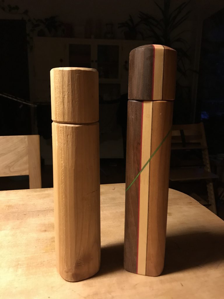 Salzmühlen aus Holzresten, Crush Grind Mahlwerk, mit Säulenbohrmaschine, Handhobel und Schweifhobel!