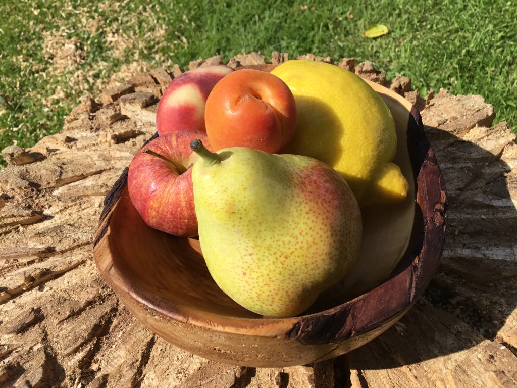 Gedrechselte Schale aus Apfelholz (mit Holzwurm als Untermieter)