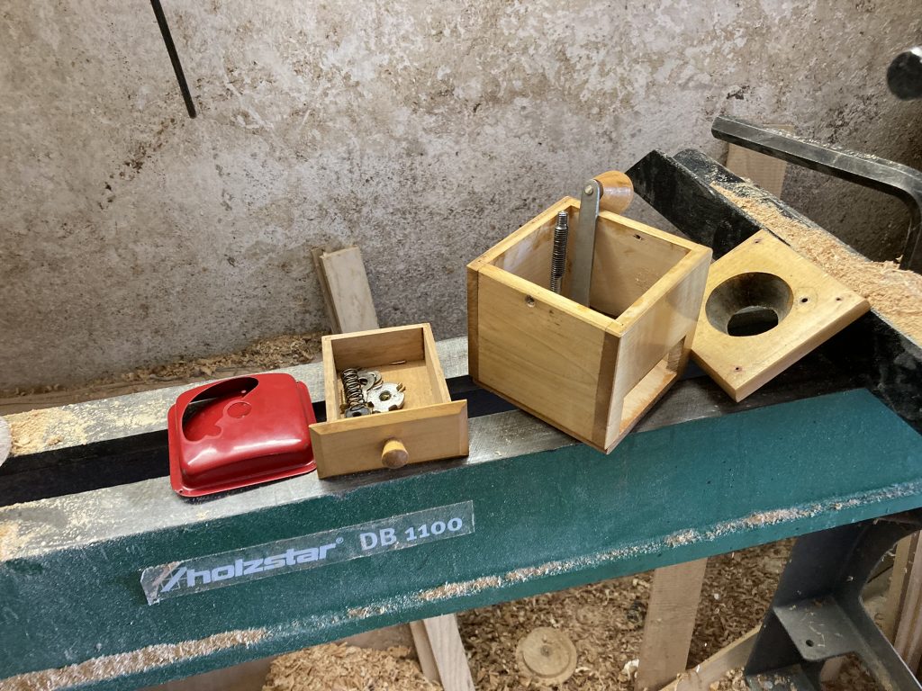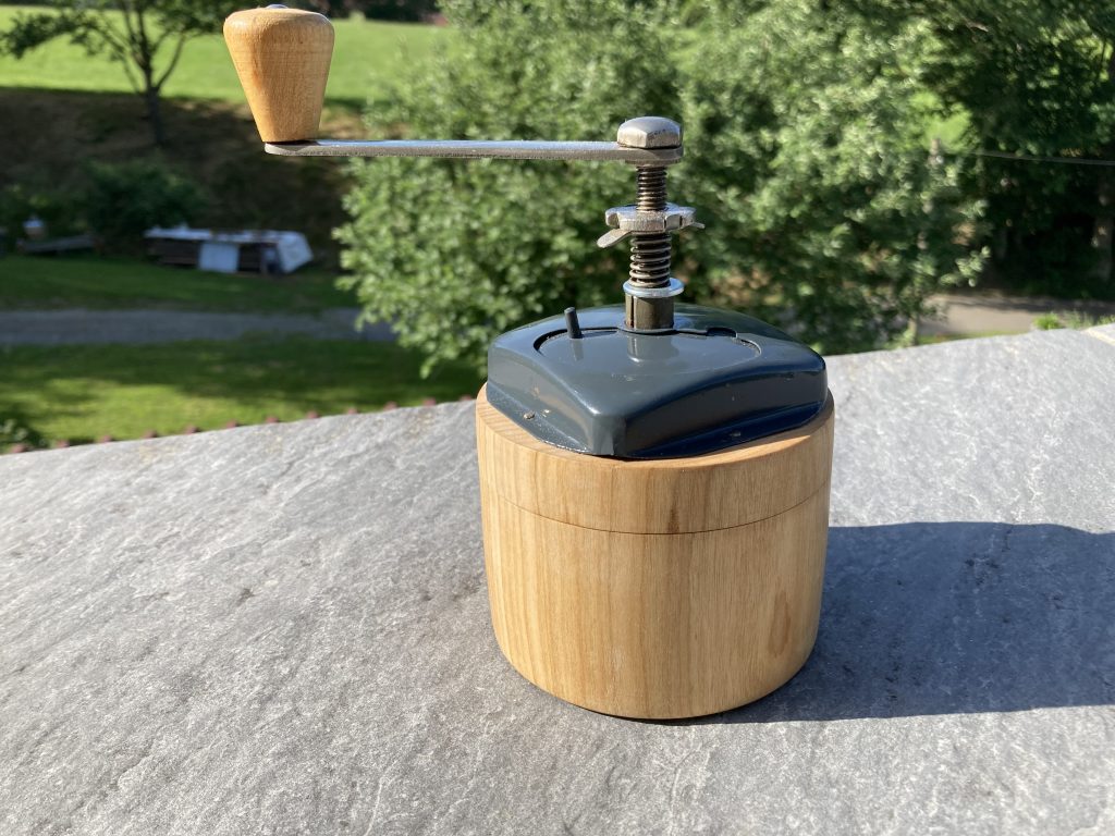 Auf dem ersten Flohmarkt des Jahres fand ich eine Kaffeemühle, das Nostalgische Desing musste natürlich aufgearbeitet werden, eine Dose stand schon lang mal auf der ToDo Liste. Also zerlegte ich die Mühle, reinigte das Mahlwerk, nahm die Maße für Bohrungen ab & suchte einen Eschenklotz der groß genug war… Nun nur noch ein bisschen Drechseln, bohren, schleiffen, nachdrechseln, basteln, zum schluss mit etwas Holzbutter behandeln und schon gibts frisch gemahlenen Kaffee.