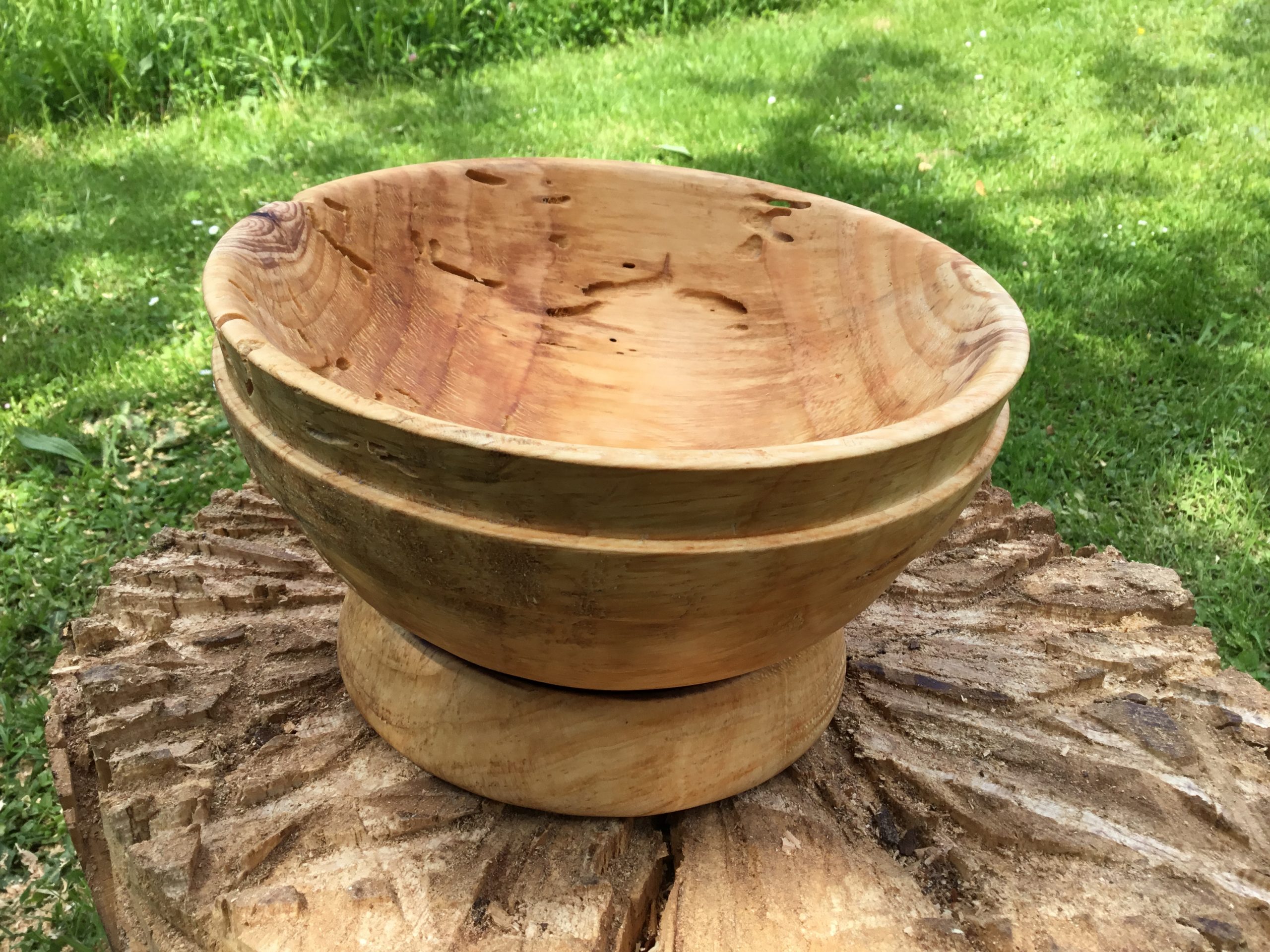Gedrechselte Schale aus Apfelholz (mit Holzwurm als Untermieter)