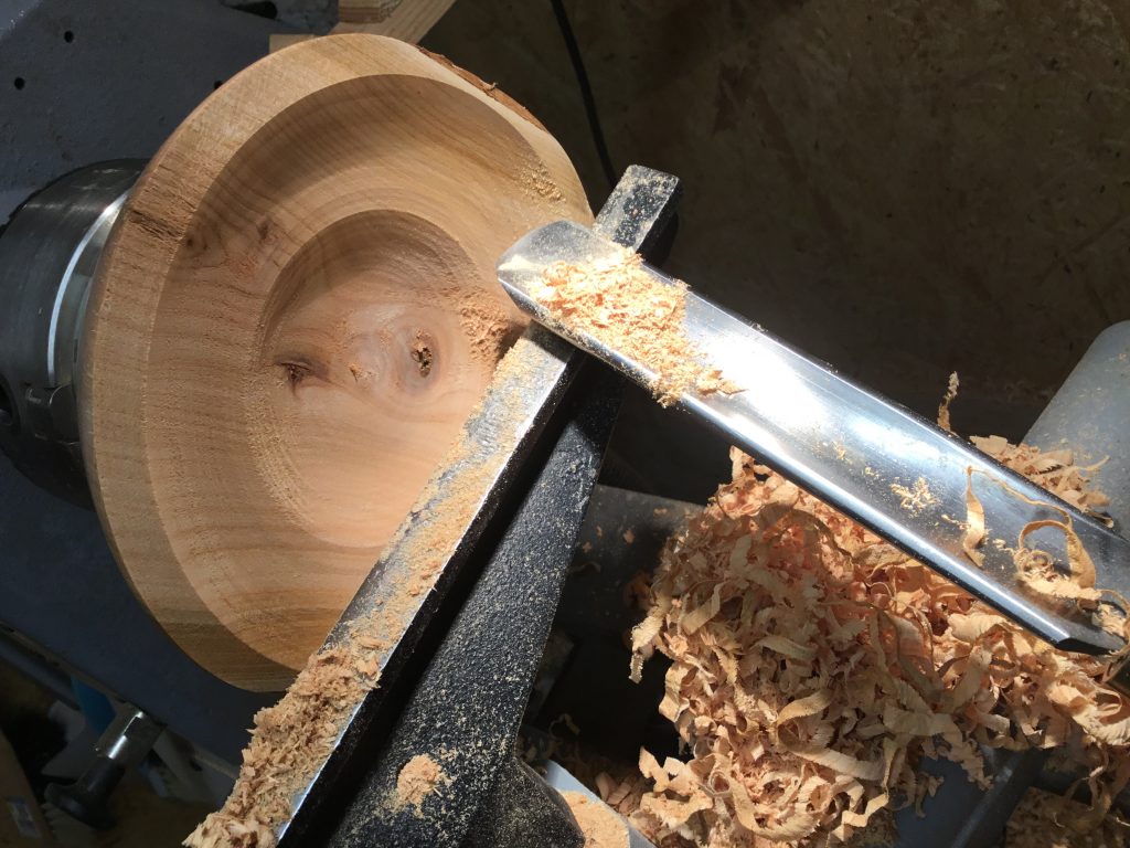 Die Schale mit Naturrand wurde aus dem Holz eines Kirschbaum gedrechselt. Durchmesser ca. 17 cm. Die Oberfläche wurde bis Körnung 400 geschliffen und abschließend mit Danish Oil behandelt (das Öl betont die Maserung des Holzes und gibts bei Dictum👍).