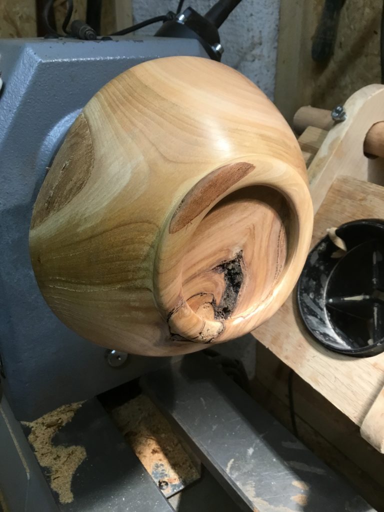 Die Schale wurde aus dem Holz eines Kirschbaum gedrechselt. Durchmesser 17cm, Höhe 6 cm. Die Oberfläche wurde bis Körnung 400 geschliffen und abschließend mit Danish Oil behandelt (Das Öl betont die Maserung des Holzes und gibts bei Dictum👍).