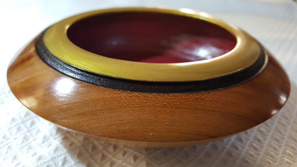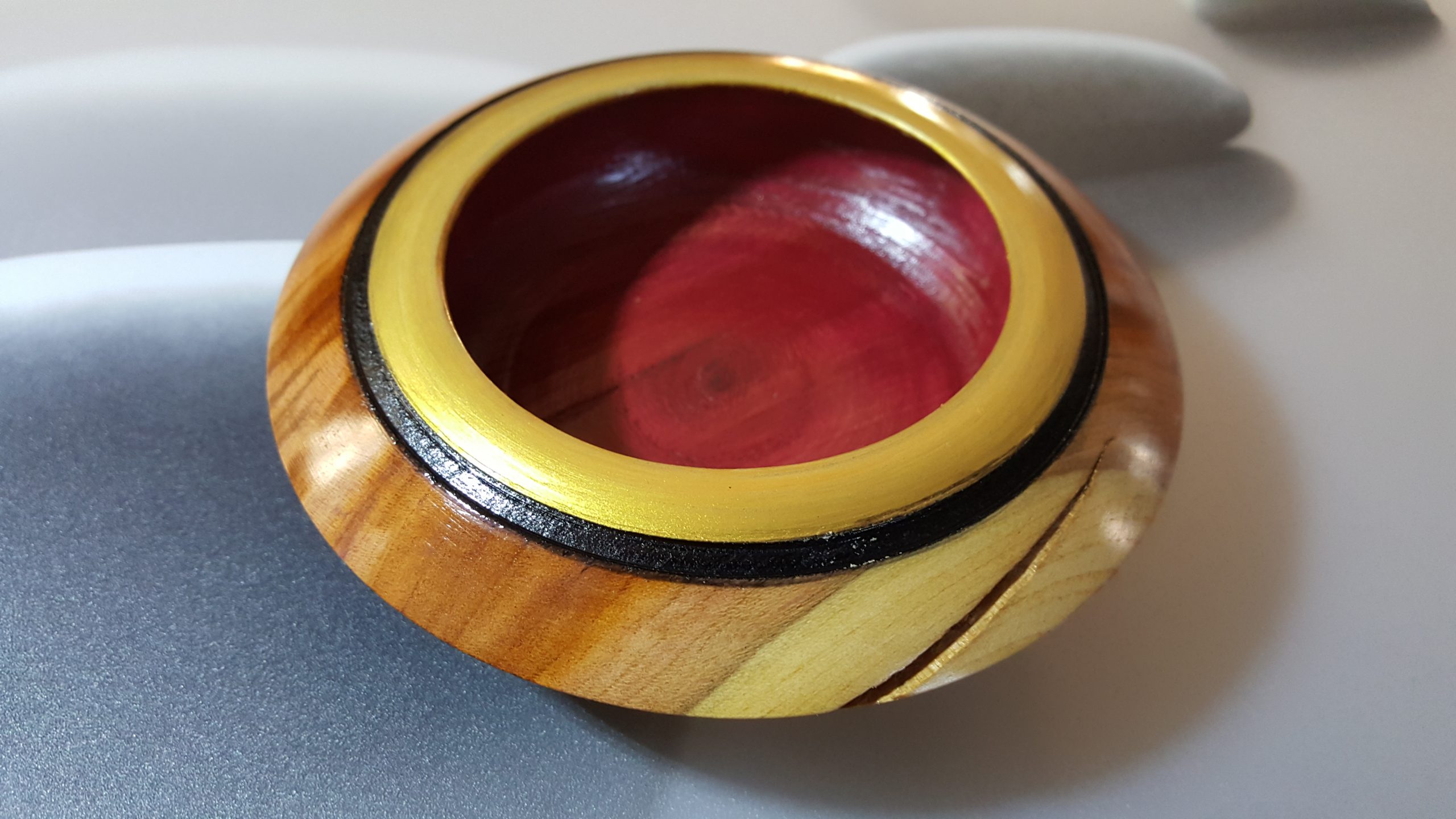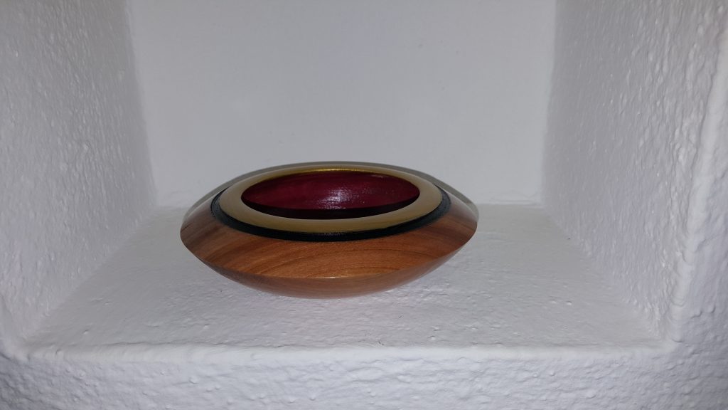Eine kleine Schale aus gestockter Buche, für den letzten Schnitt muss die Schalenröhre rasiermesserscharf sein! Das Holz verzeiht keine fehler und reißt sofort aus! Behandelt wurde die Schale mit selbst gemachtem Holzbalsam, aus Leinöl, Canaubawachs und eigenem Bienenwachs…
