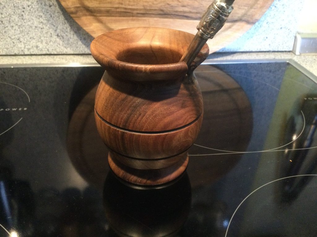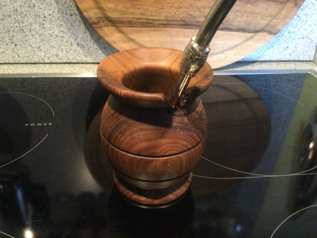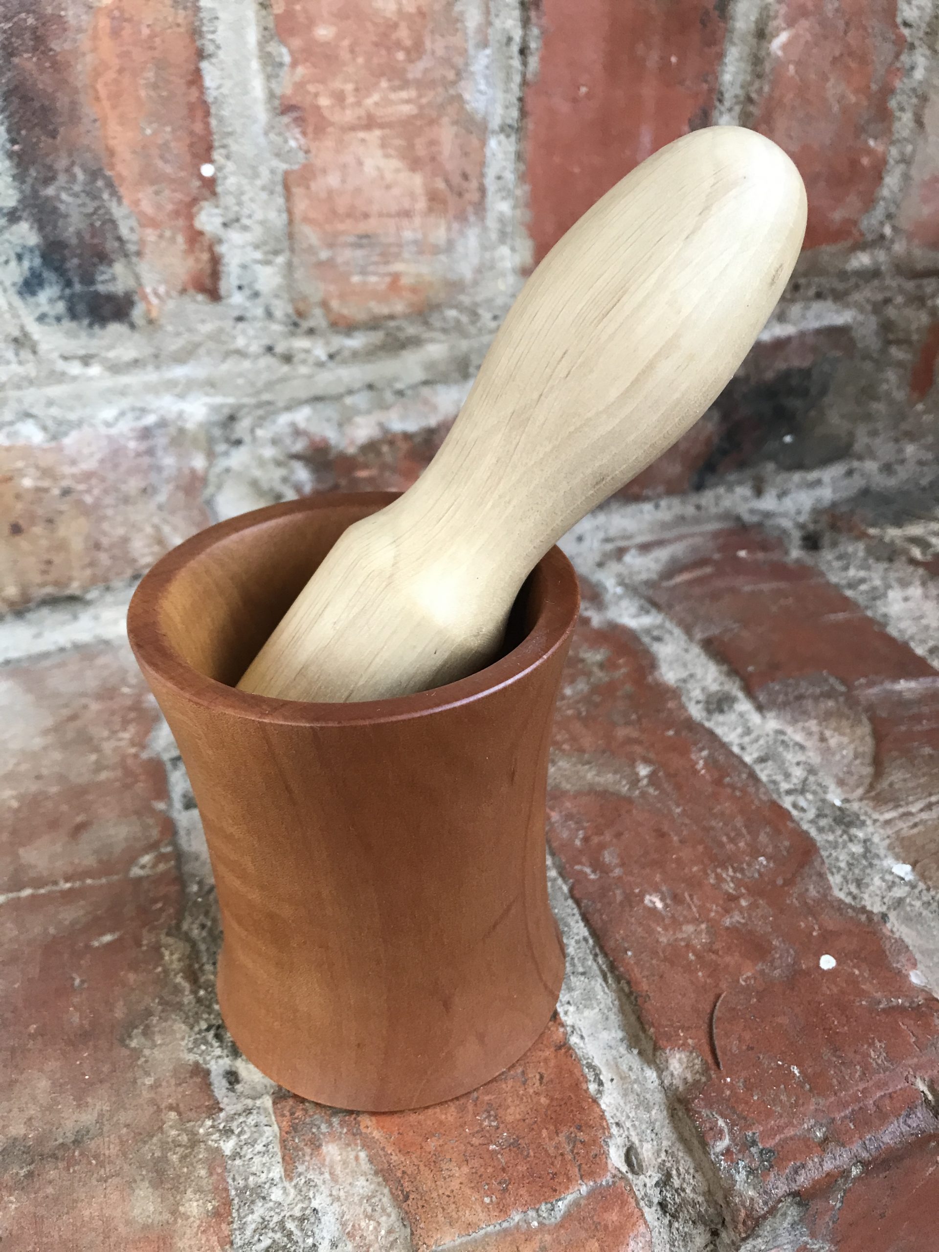 Kleiner Mörser zum zerstoßen von Kräuter, sodass diese ihr volles Aroma entwickeln können. Oberfläche mit Tungöl, wurde sehr lange bei viel Sonnenlicht getrocknet!