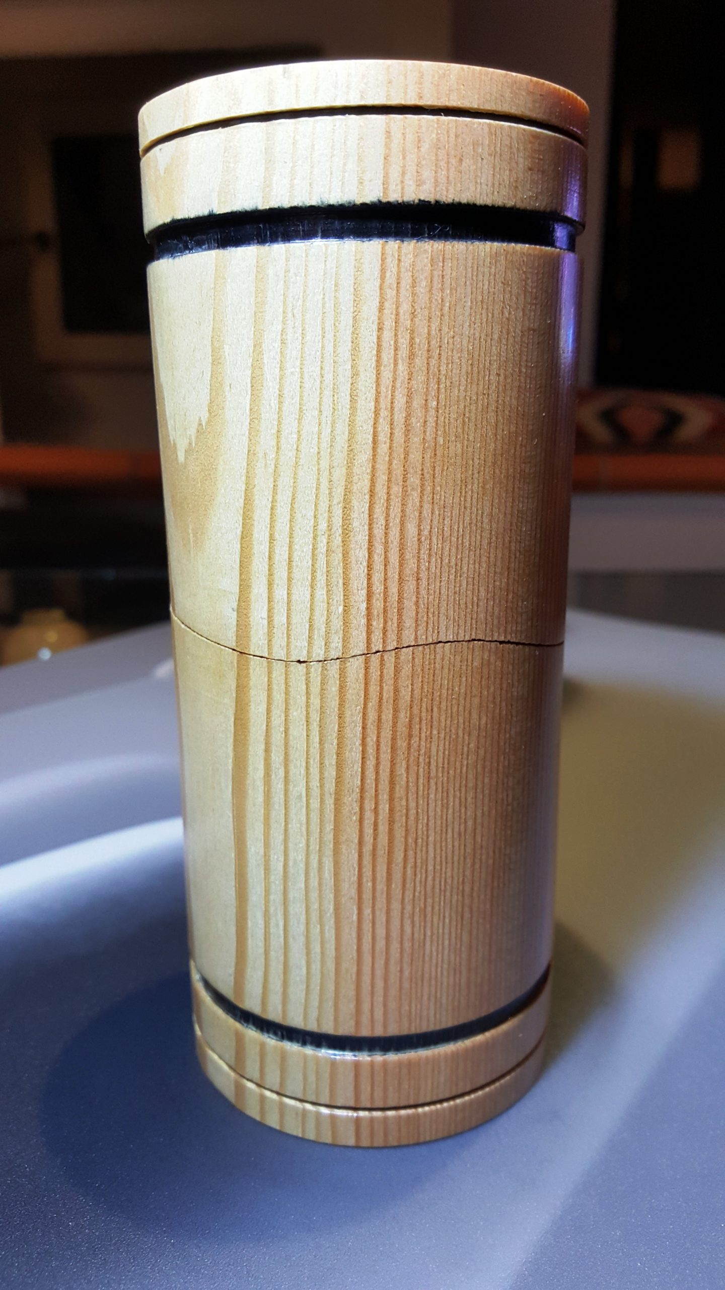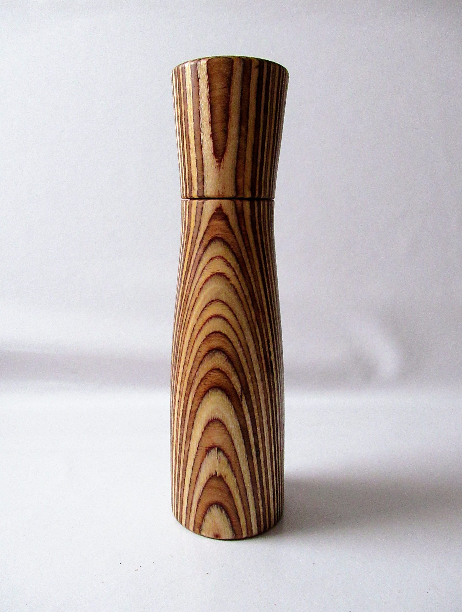 Pfeffermühle aus verleiten Birkenmultiplex. Oberfläche: 2× mit Tungöl von DICTUM eingelassen.